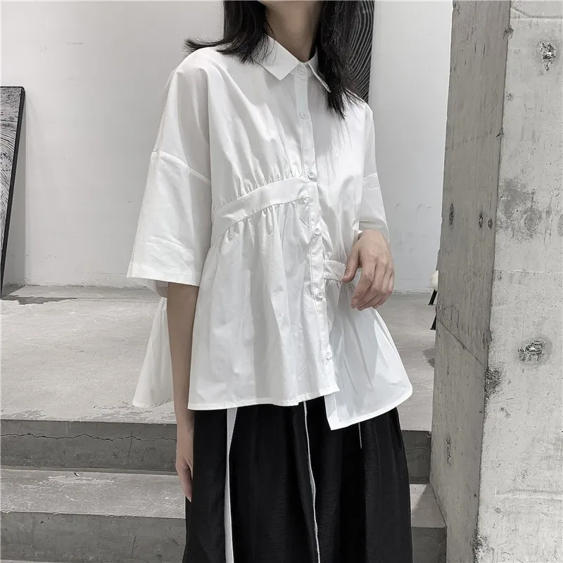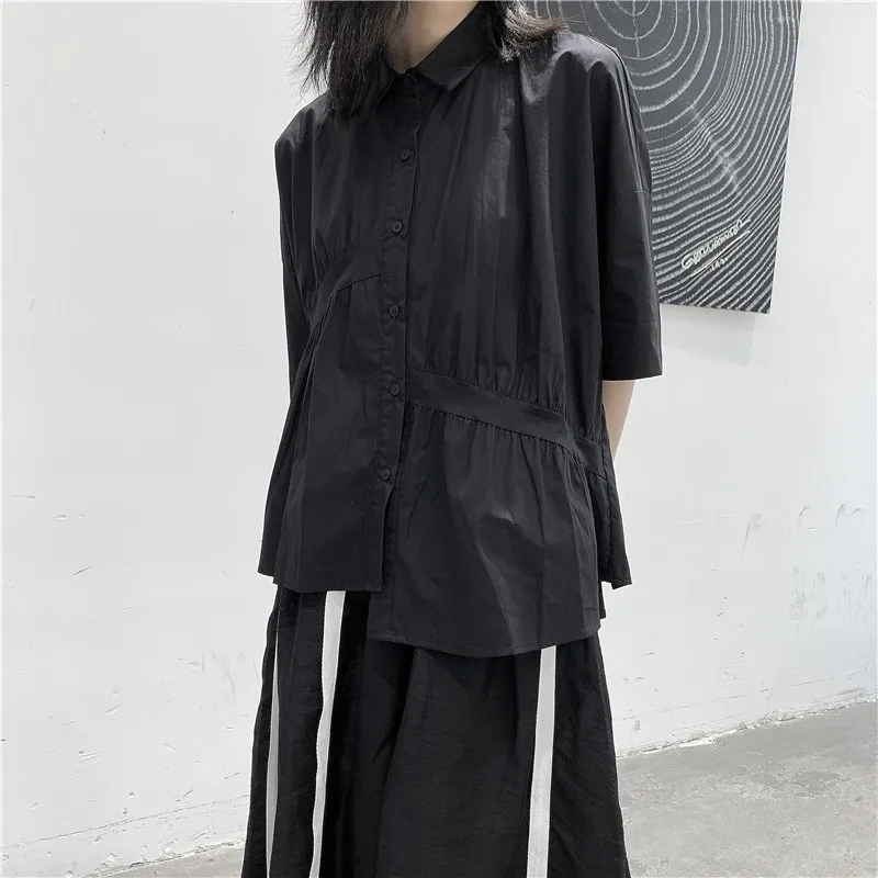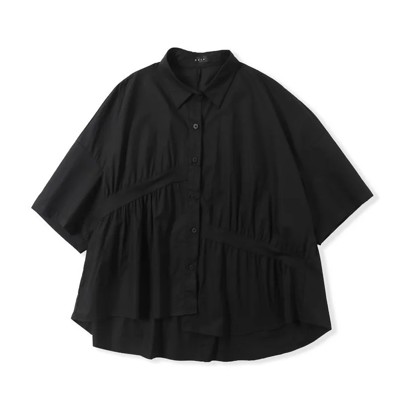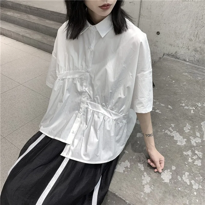 衣都精品- 2023新款日系褶皺不規則寬鬆顯瘦上衣
