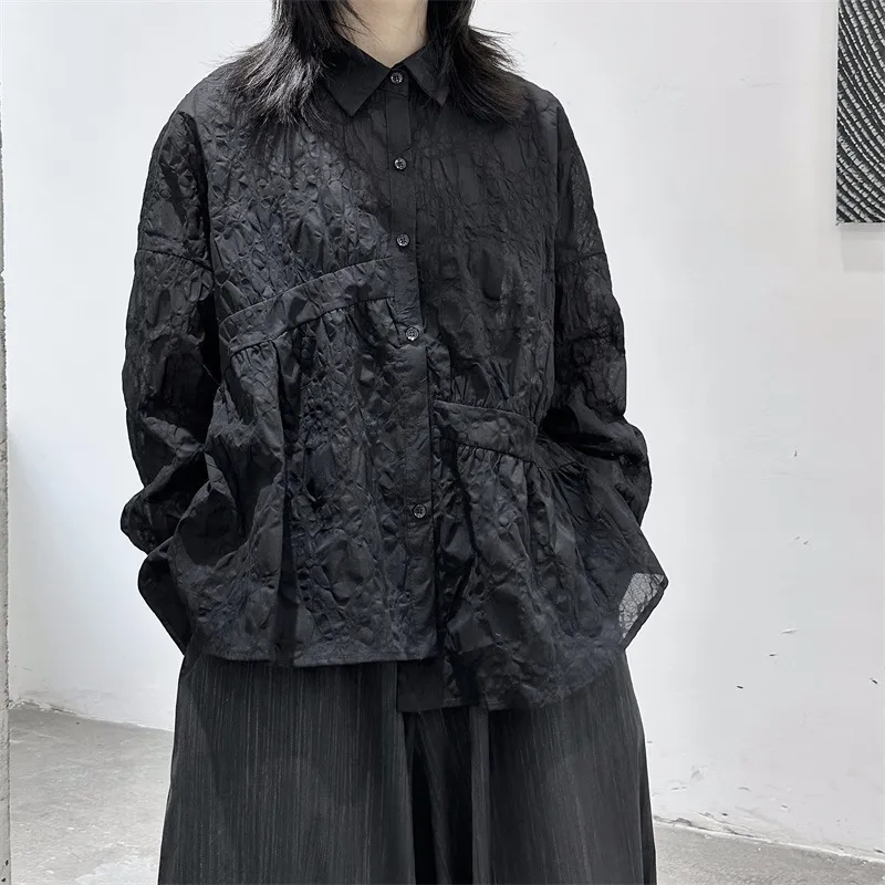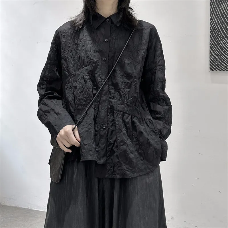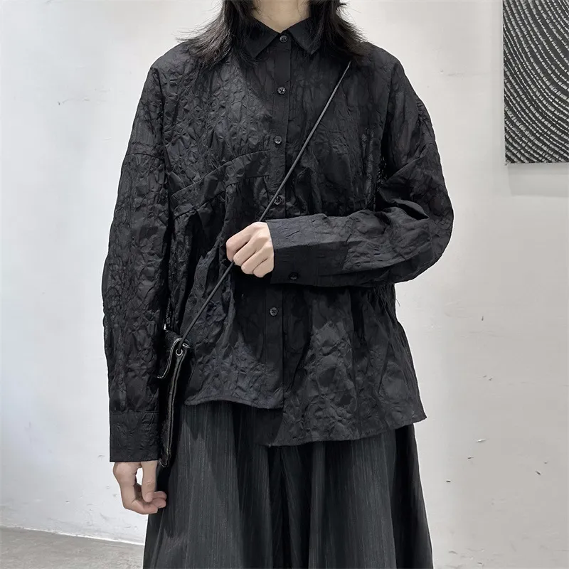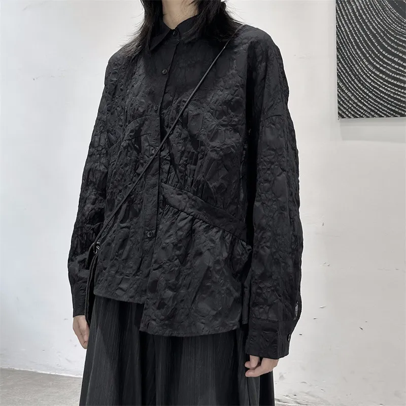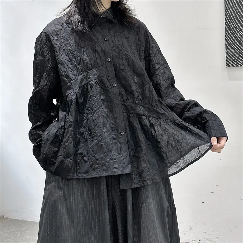 衣都精品- 2023新款日系褶皺不規則寬鬆顯瘦上衣
