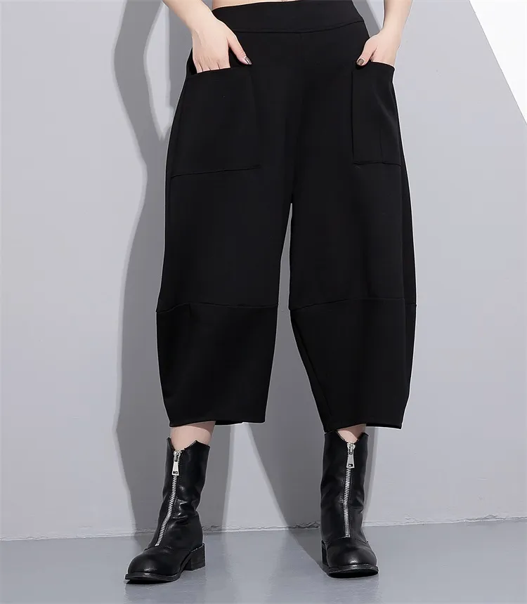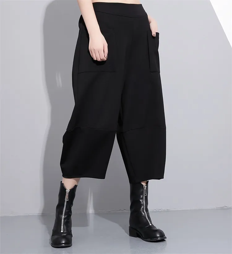 衣都精品- 2023新款高腰寬鬆花苞九分闊腿褲