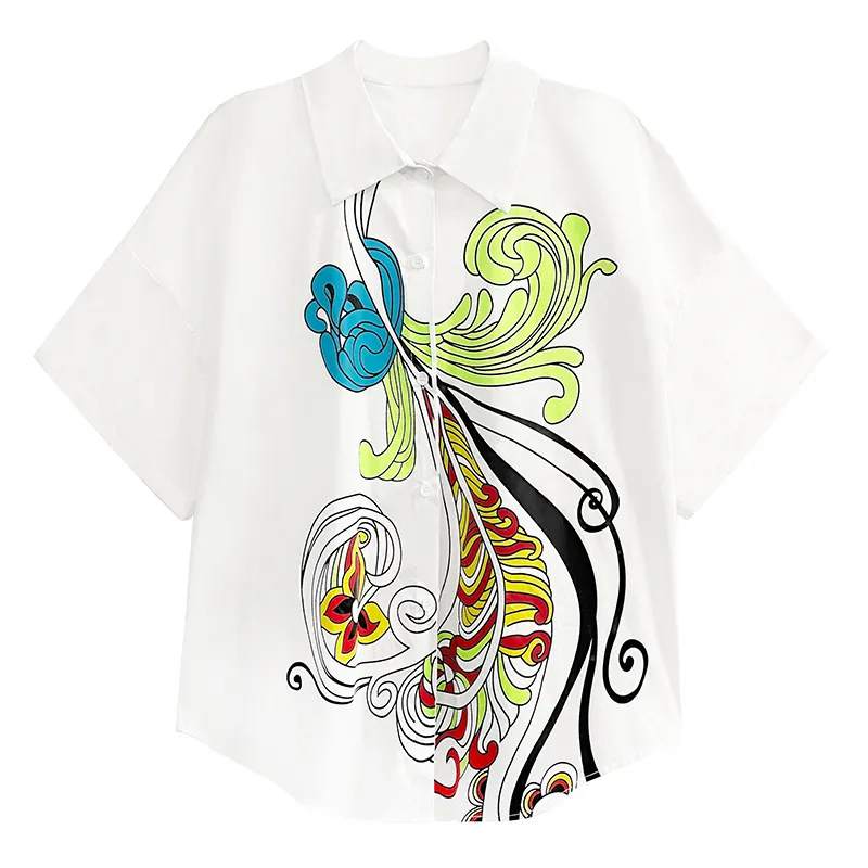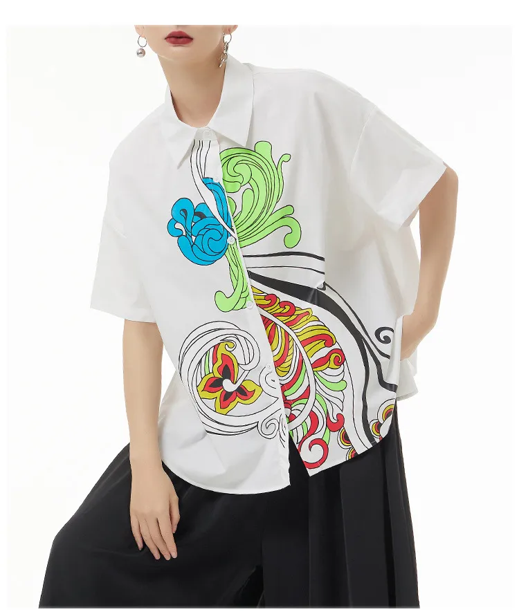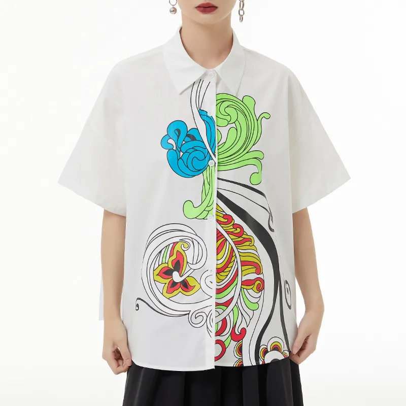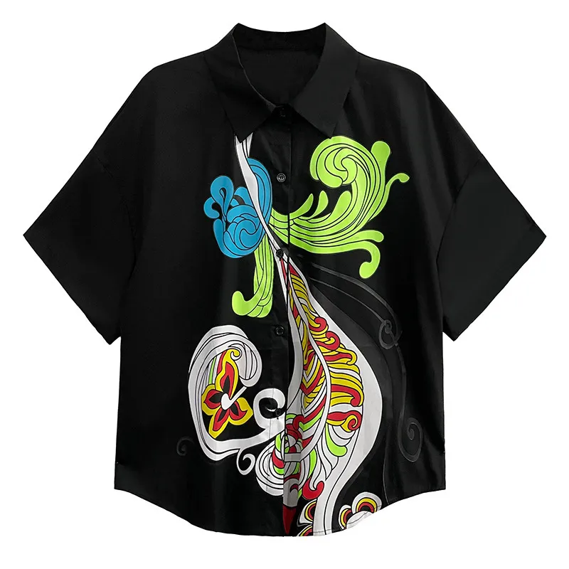 衣都精品- 2023新款韓版抽象彩色印花短袖上衣