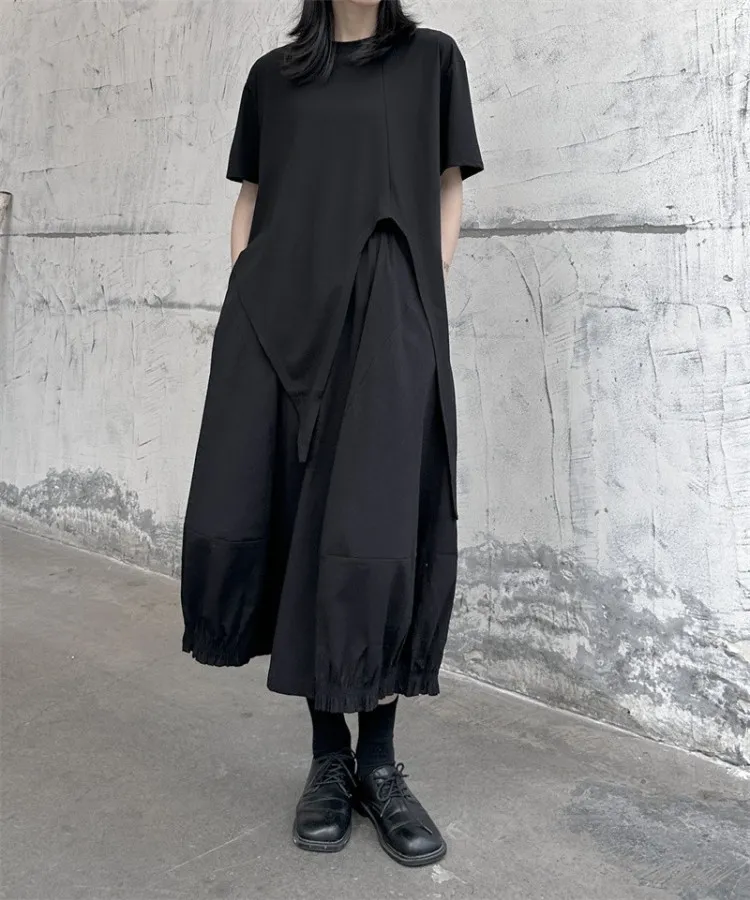 衣都精品- 2023新款日系不規則兩穿綁帶短袖上衣