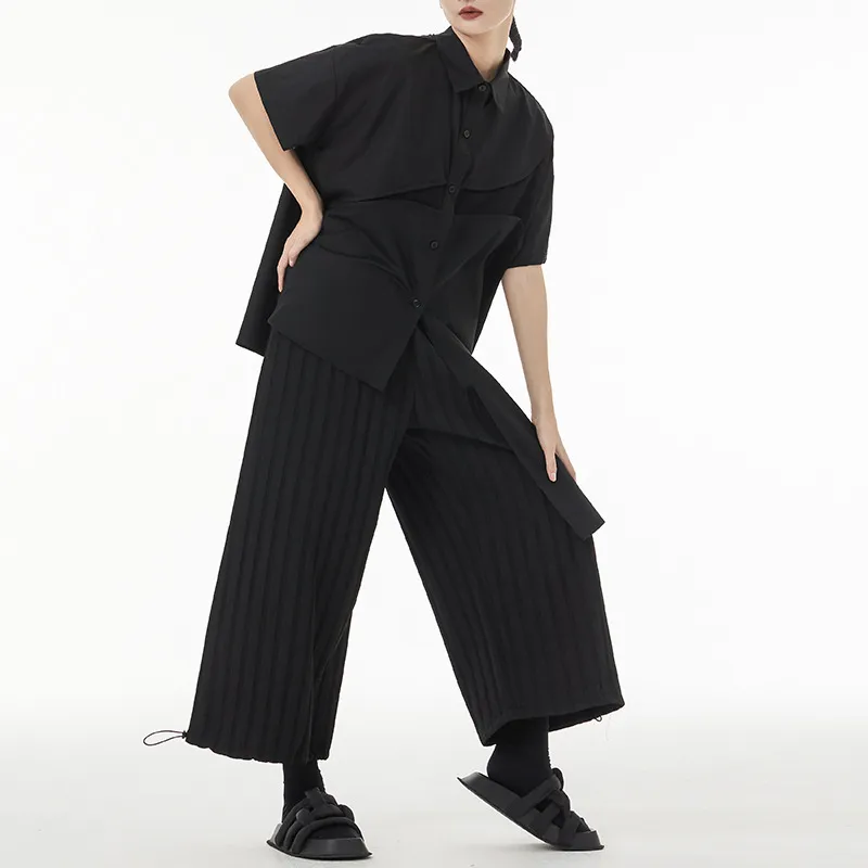 衣都精品- 2023新款日系不規則兩穿綁帶短袖上衣