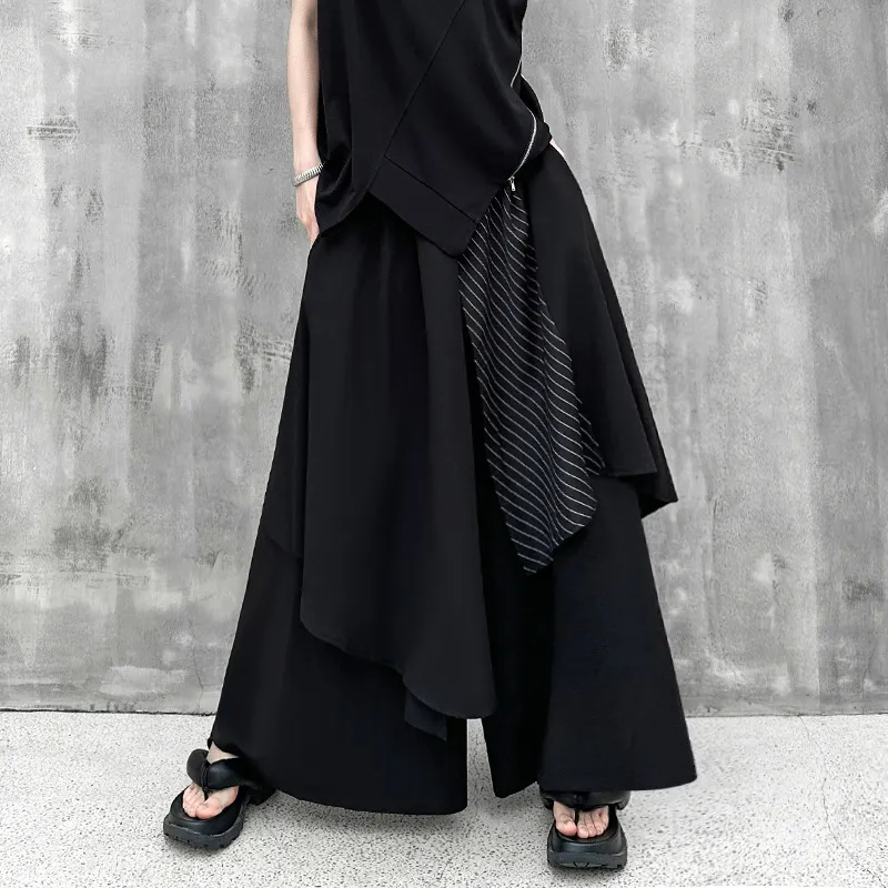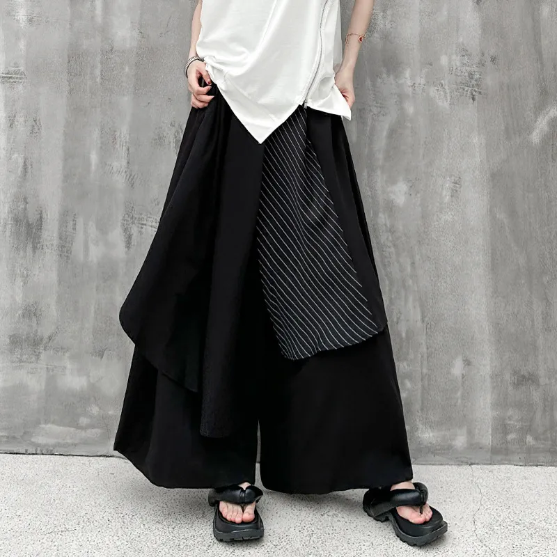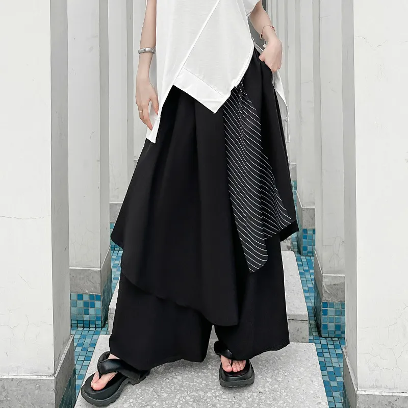 衣都精品- 2023新款山本暗黑風拼接條紋闊腿褲