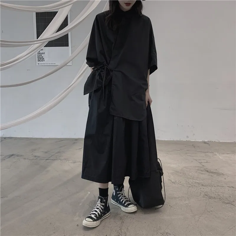 衣都精品- 2023新款日系暗黑風寬鬆綁帶上衣