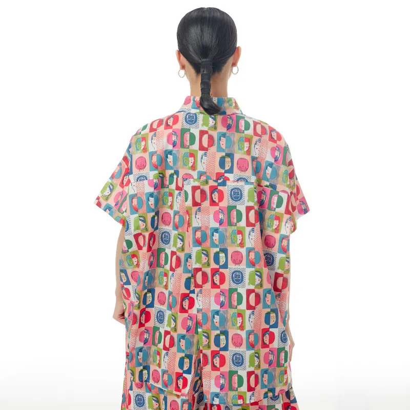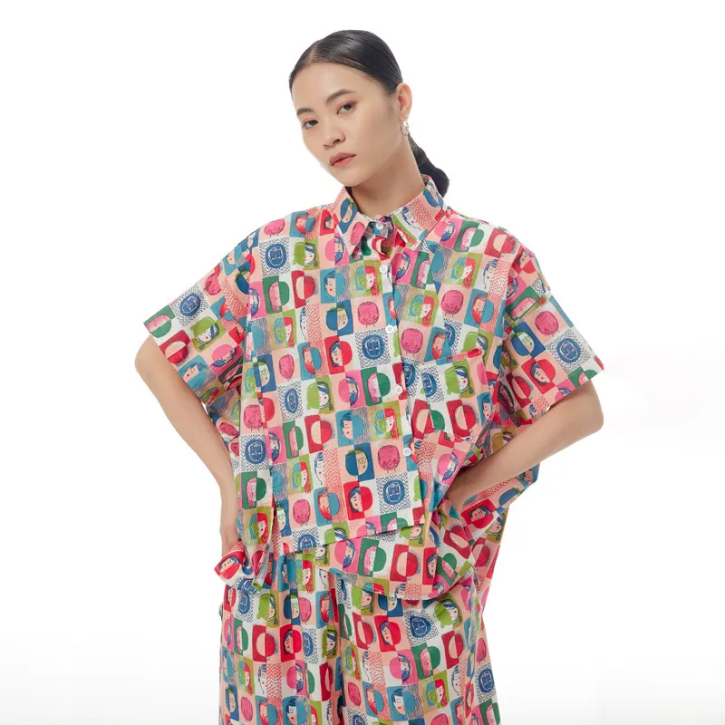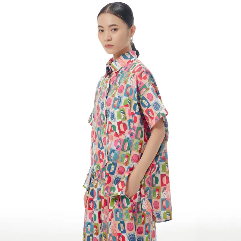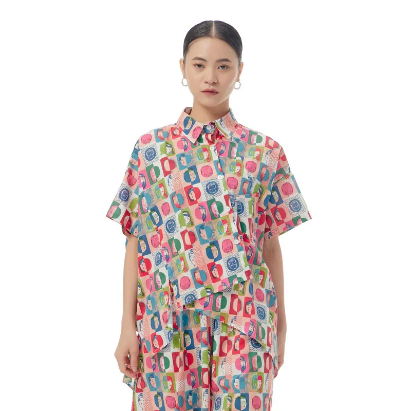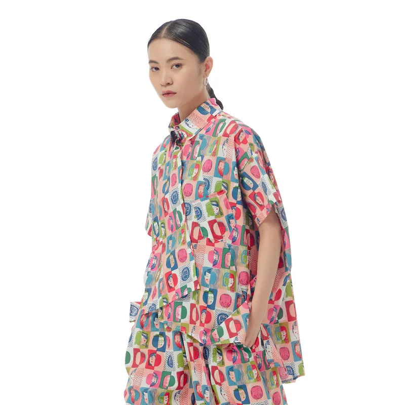衣都精品- 2023新款側邊開衩寬鬆彩色印花上衣
