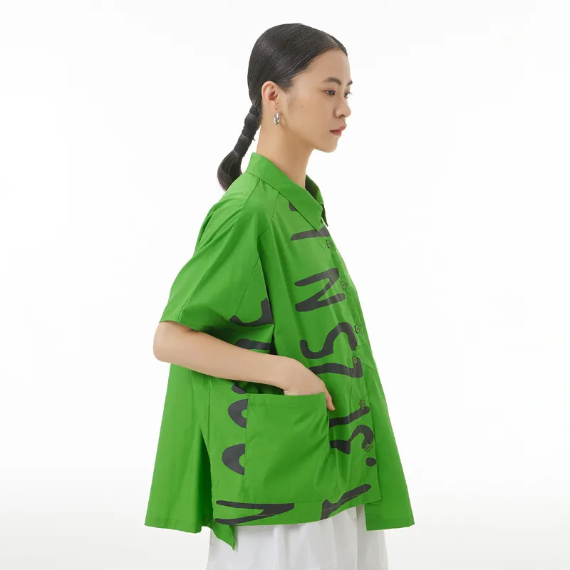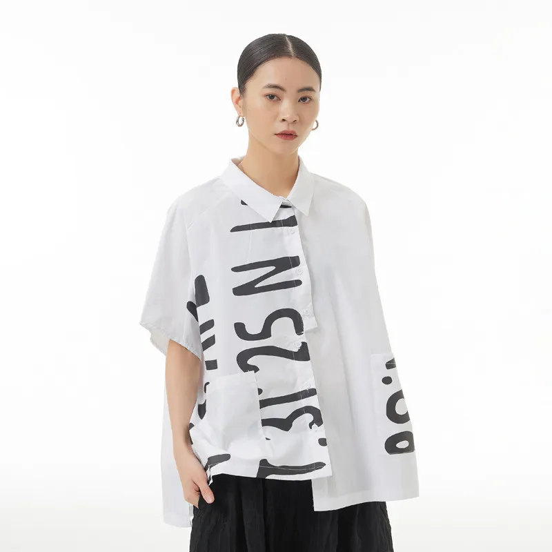 衣都精品- 2023新款側邊開衩寬鬆顯瘦印花上衣