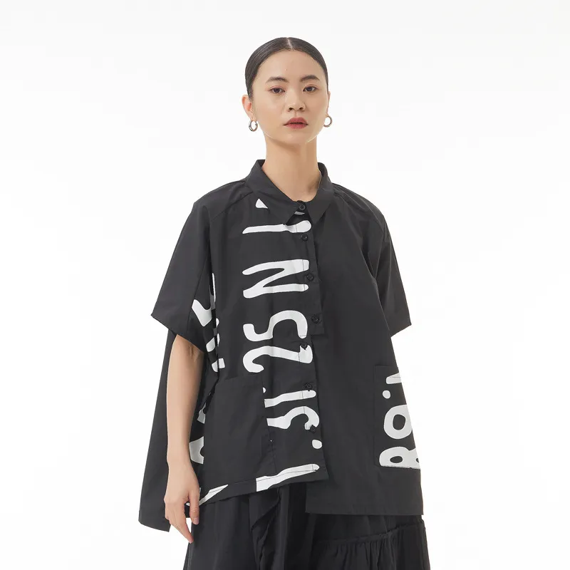 衣都精品- 2023新款寬鬆顯瘦不規則拼接短袖上衣