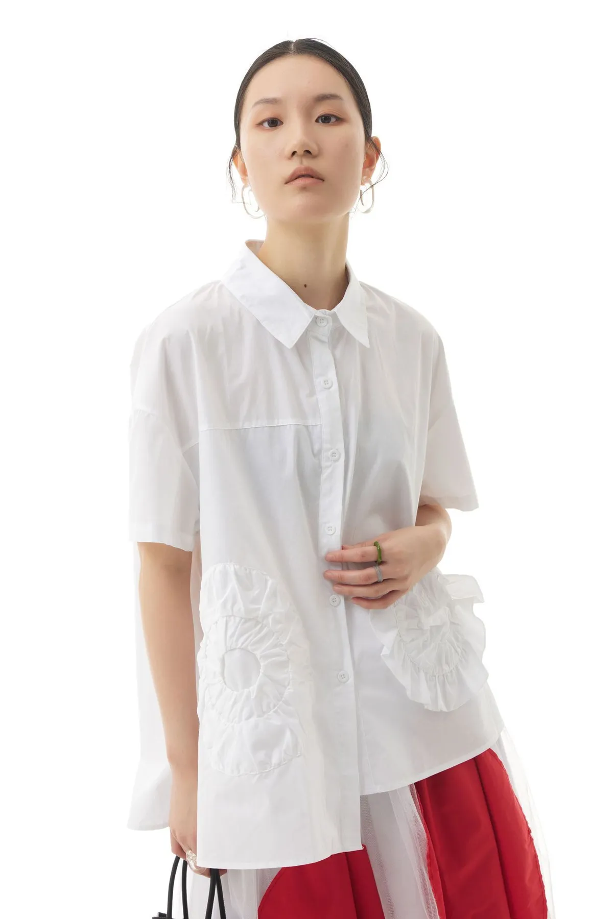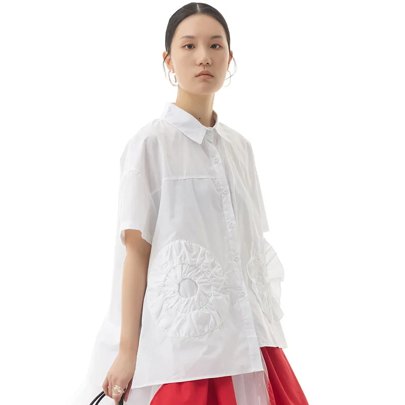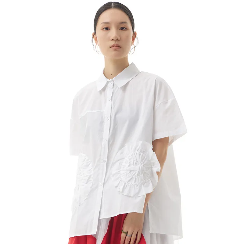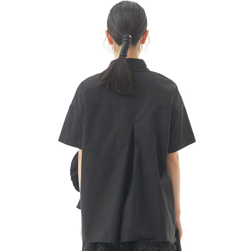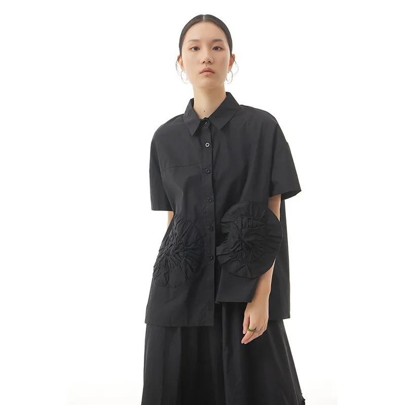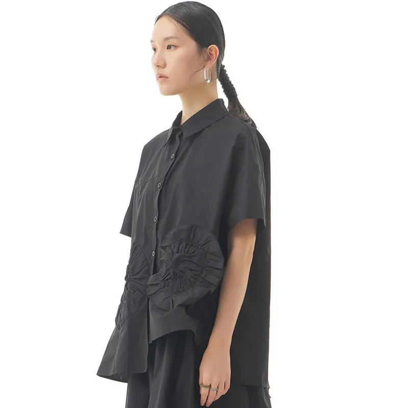 衣都精品- 2023新款褶皺圓形拼接不規則短袖上衣