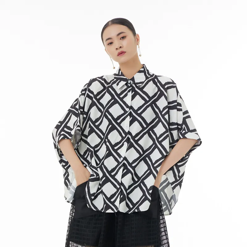 衣都精品- 2023新款歐美時尚寬鬆不規則設計上衣
