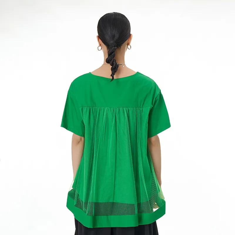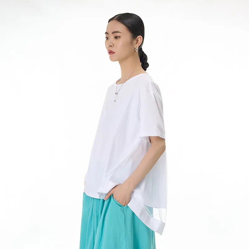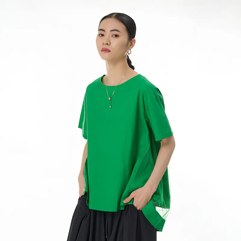 衣都精品- 2023新款簡約日韓網紗純棉短袖上衣