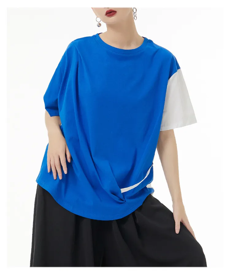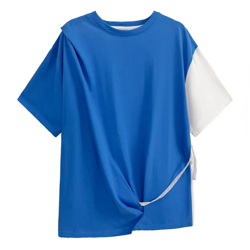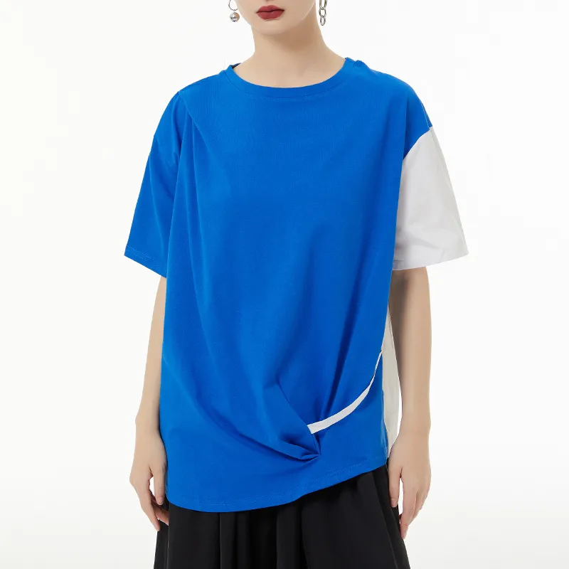 衣都精品- 2023新款韓版撞色拼接薄款短袖上衣