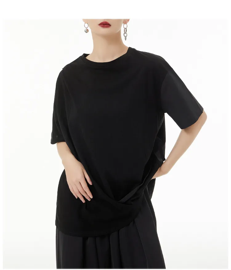 衣都精品- 2023新款不規則下擺印花短袖上衣