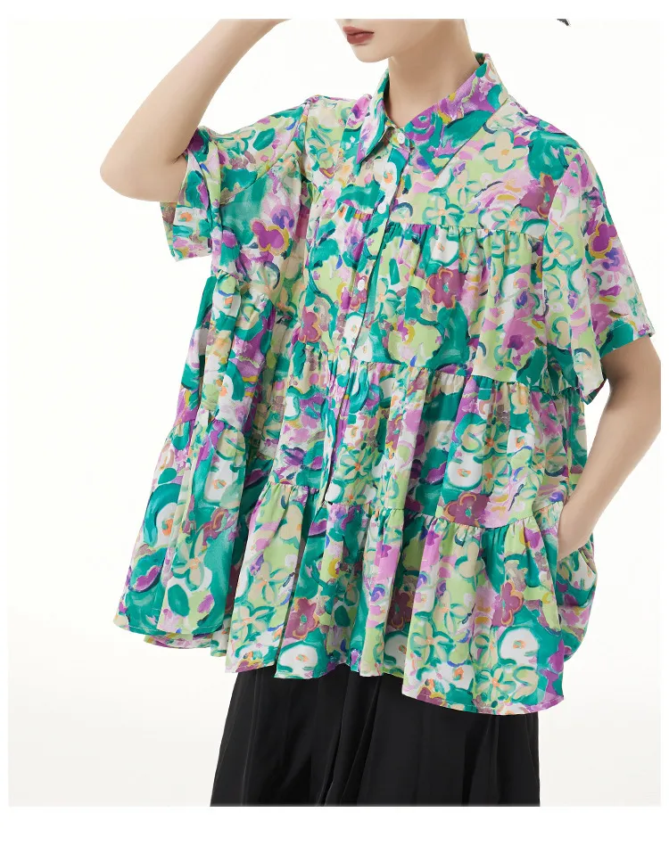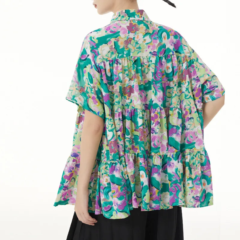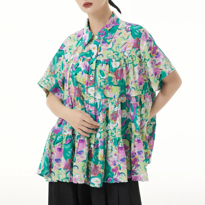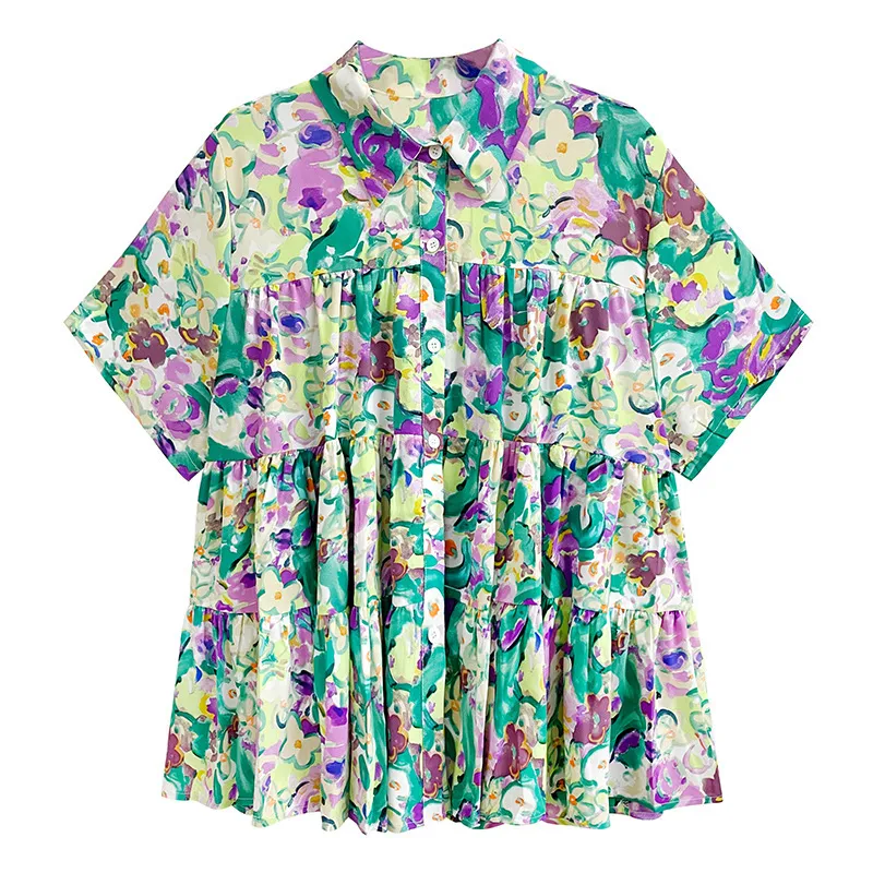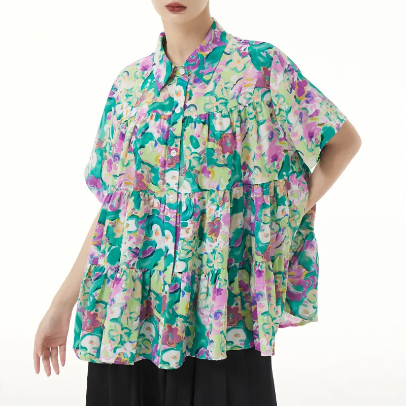 衣都精品- 2023新款法式復古碎花寬鬆短袖上衣