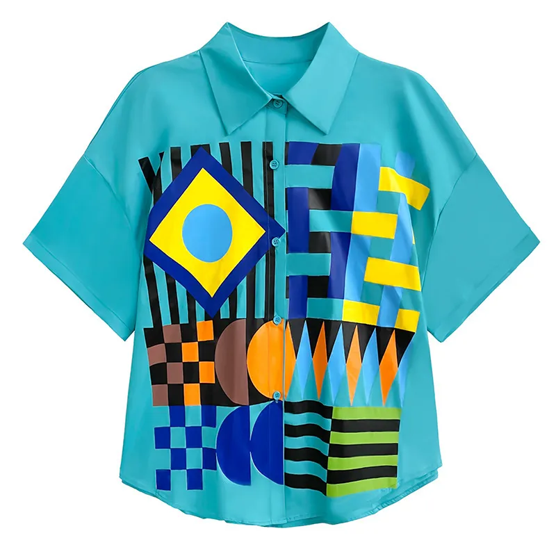 衣都精品- 2023新款法式復古碎花寬鬆短袖上衣