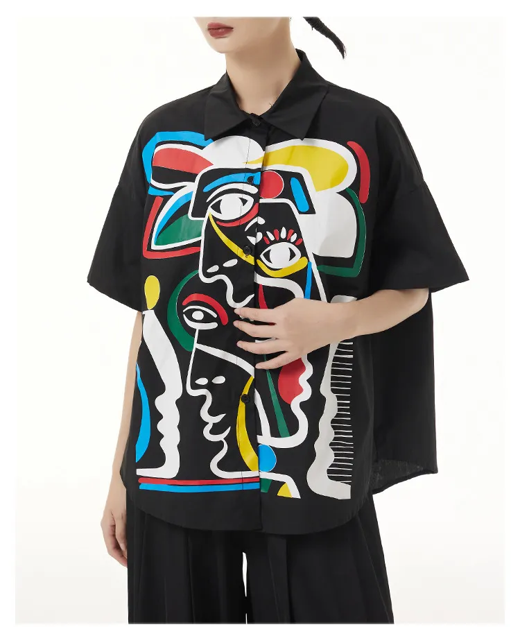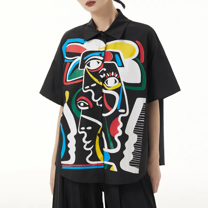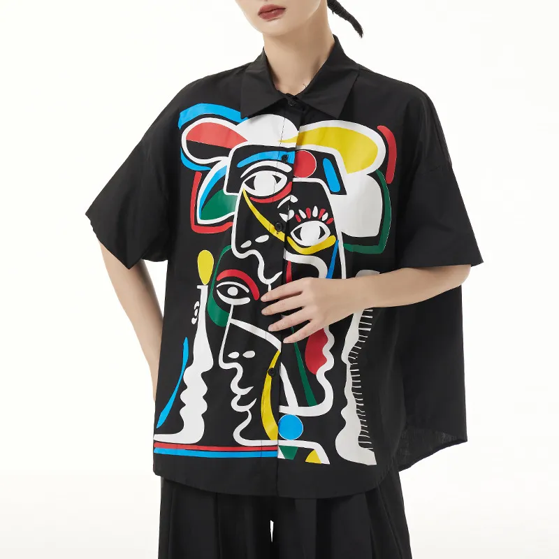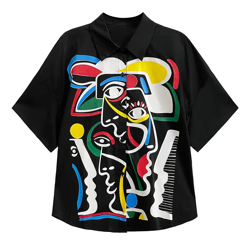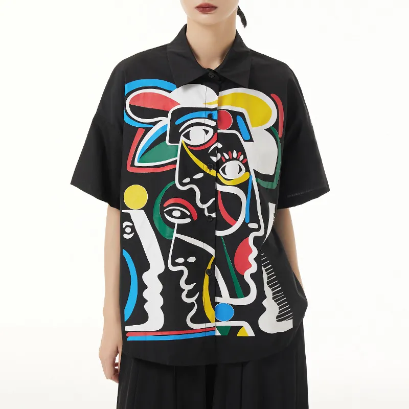 衣都精品- 2023新款韓版寬鬆印花遮肚顯瘦短袖上衣