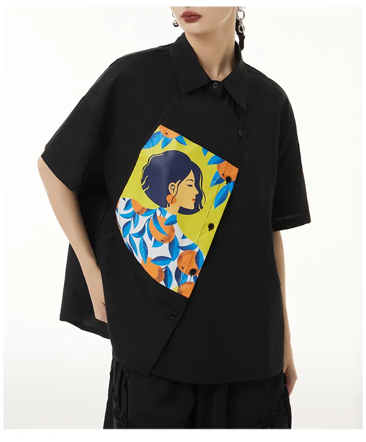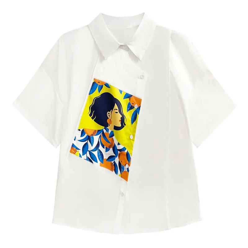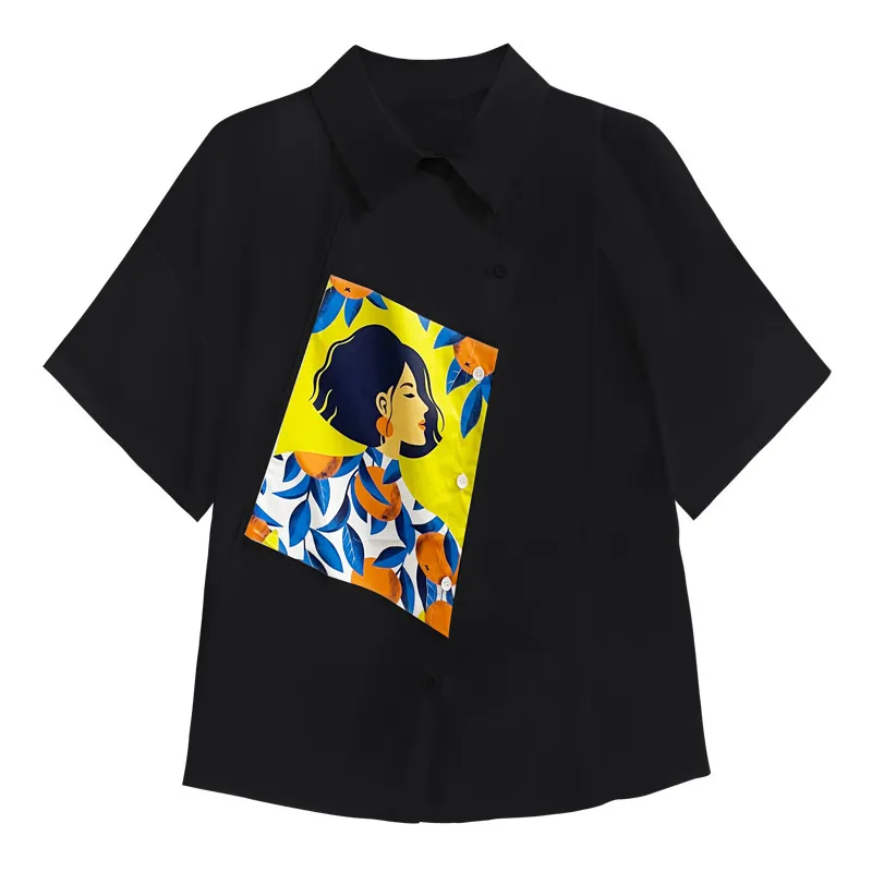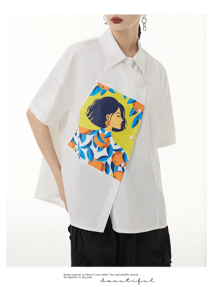 衣都精品- 2023新款韓版薄款寬鬆遮肚顯瘦印花上衣