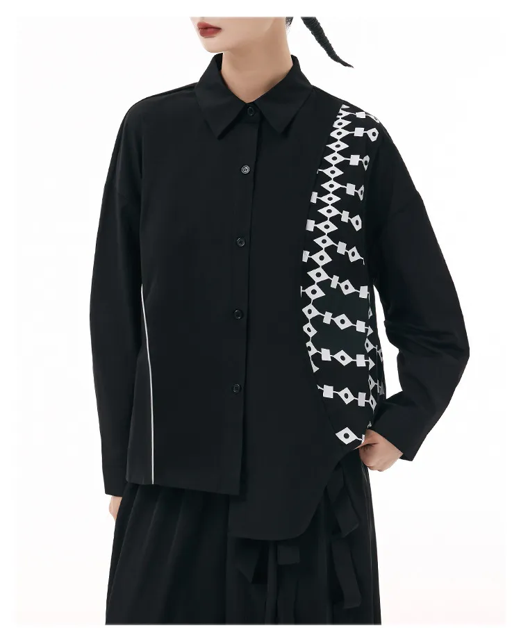 衣都精品- 2023新款日系暗黑風個性不對稱長袖上衣