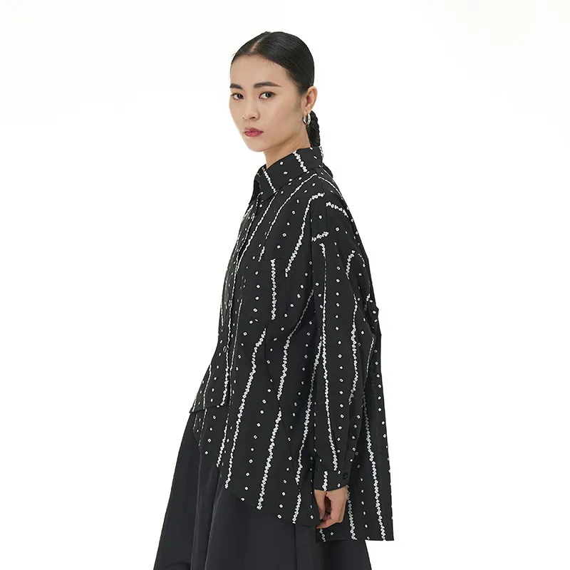 衣都精品- 2023新款寬鬆斑馬紋印花插肩袖上衣