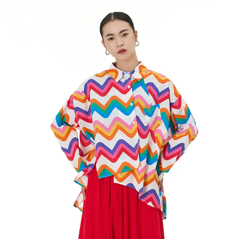 衣都精品- 2023新款韓國原創彩虹色寬鬆顯瘦上衣