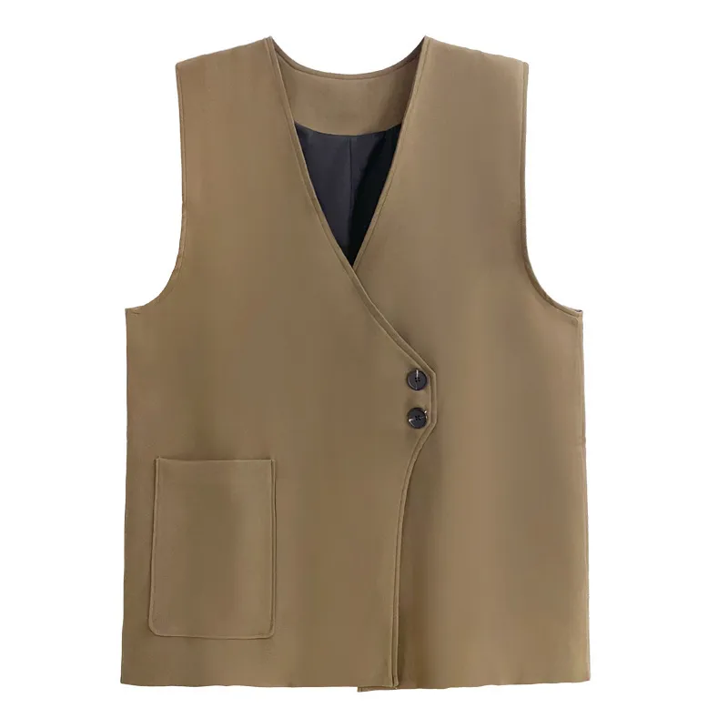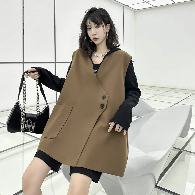 衣都精品- 2023新款韓版寬鬆兩粒扣無袖V領馬甲外套