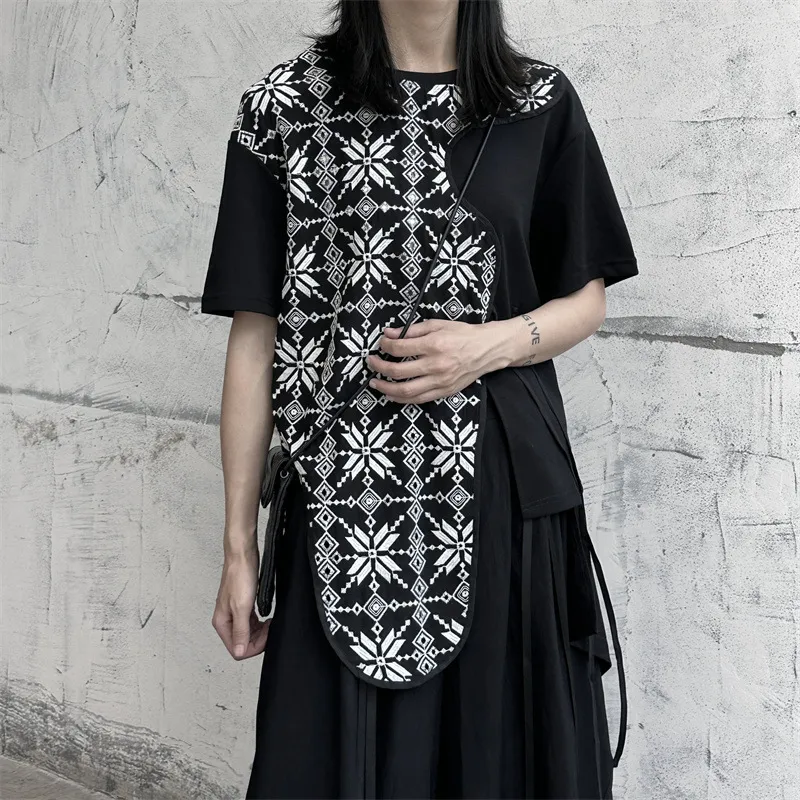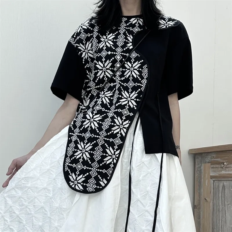 衣都精品- 2023新款山本鏤空提花設計感不規則拼接上衣