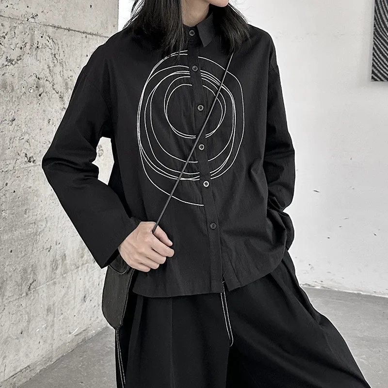 衣都精品- 2023新款日系小眾設計感幾何明線圖長袖上衣