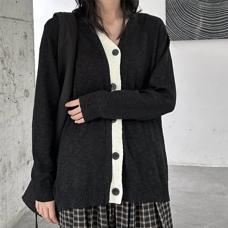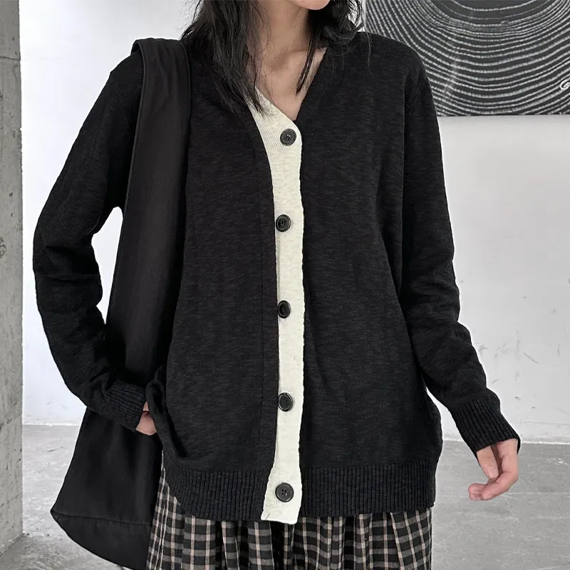 衣都精品- 2023新款日系顯瘦寬鬆單排扣黑色連衣裙