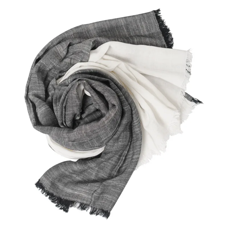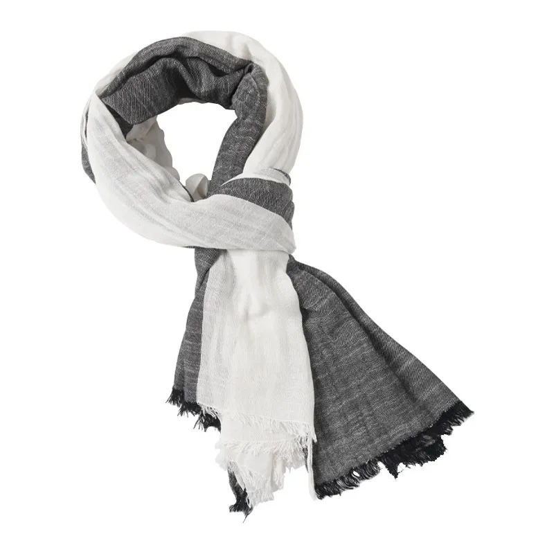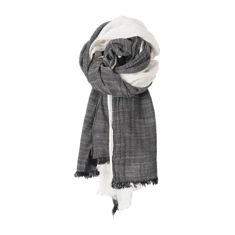 衣都精品- 2023新款灰白拼接褶皺細條披肩圍巾