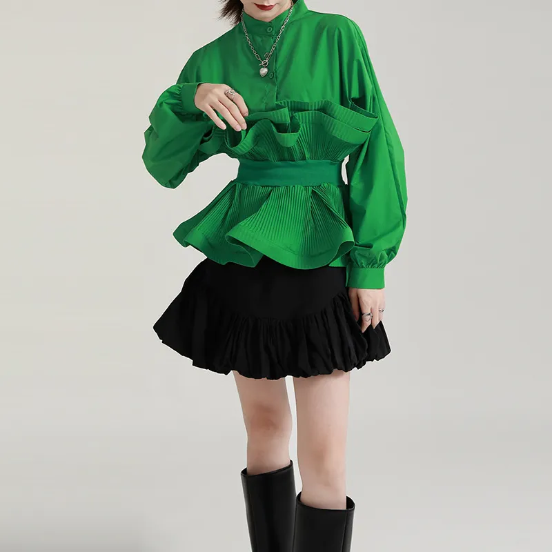 衣都精品- 2023新款燈籠袖立體裝飾荷葉邊收腰上衣