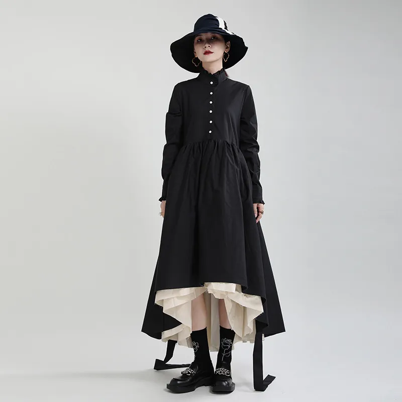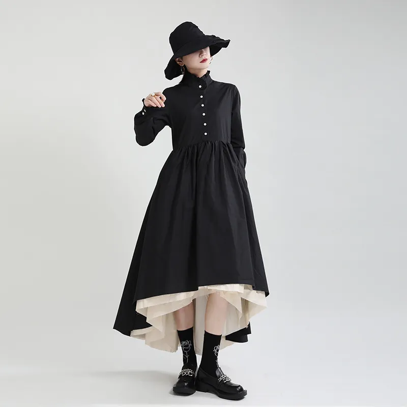 衣都精品- 2023新款多層次拼接宮廷風立領單排扣連衣裙
