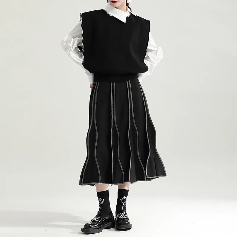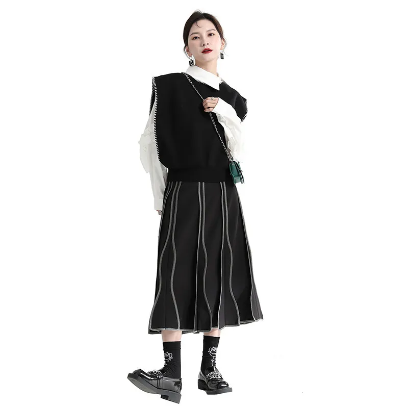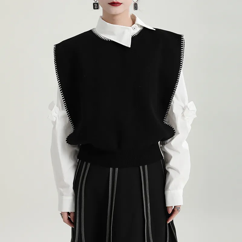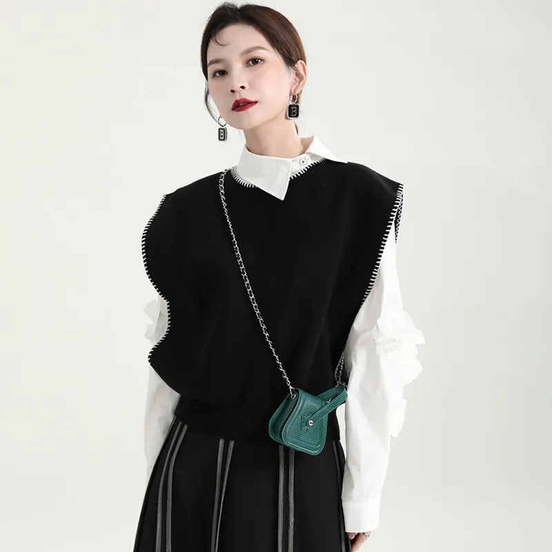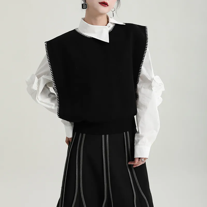 衣都精品- 2023新款明線鎖邊設計撞色針織馬甲背心