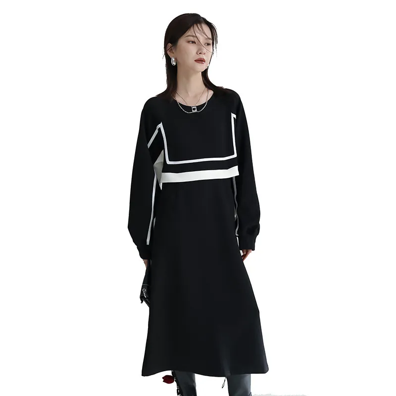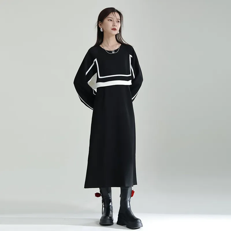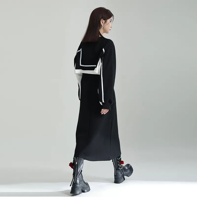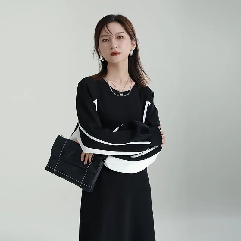 衣都精品- 2023新款高領長袖撞色拼接毛衣+半身裙套裝