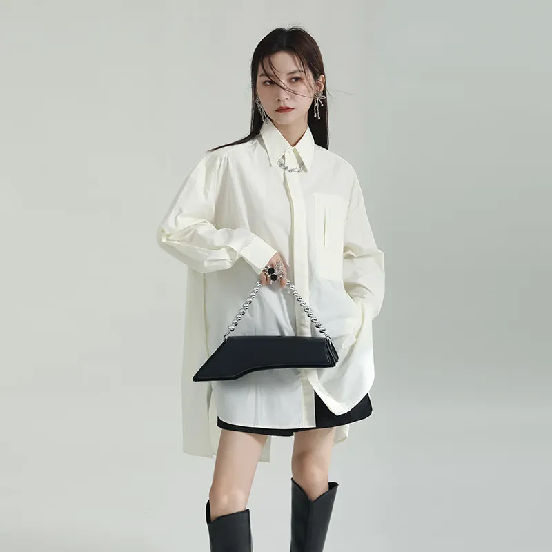 衣都精品- 2023新款寬鬆港味小眾中長款不規則上衣