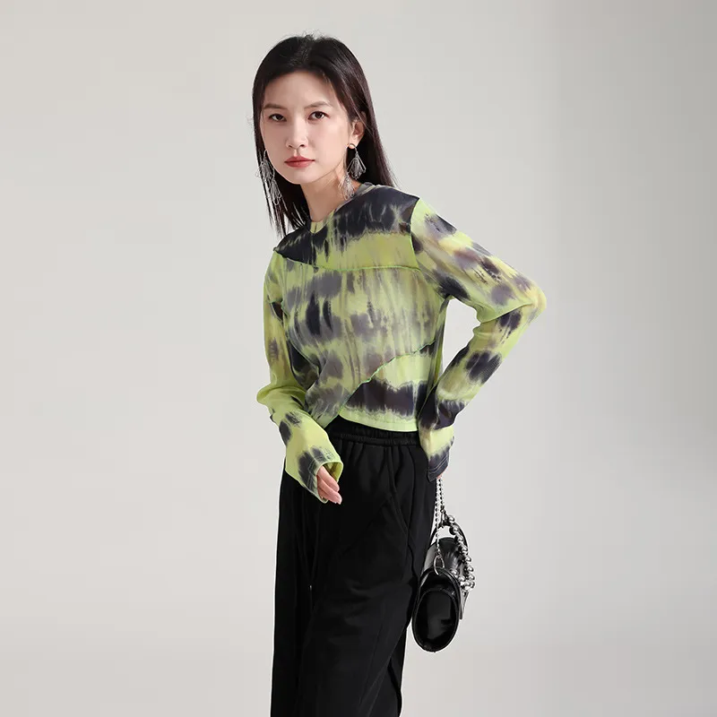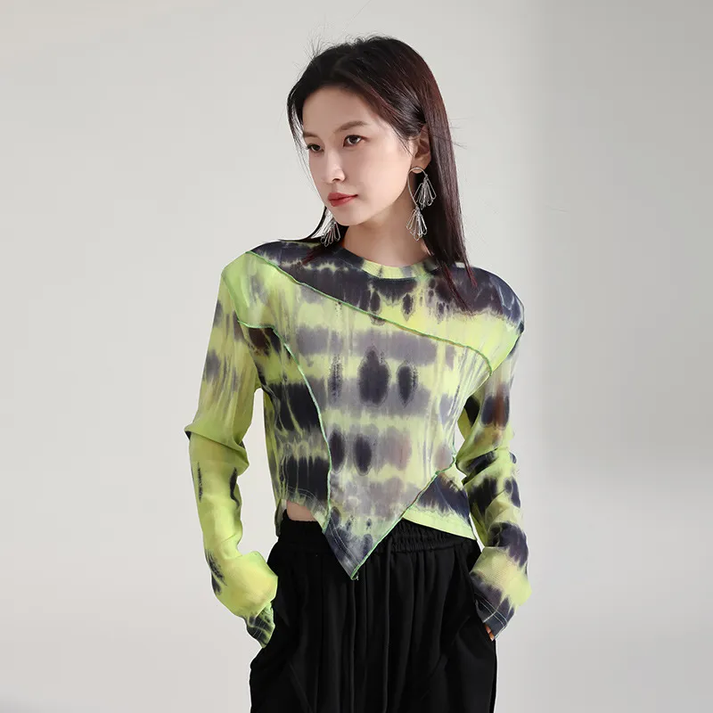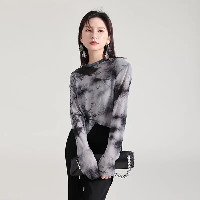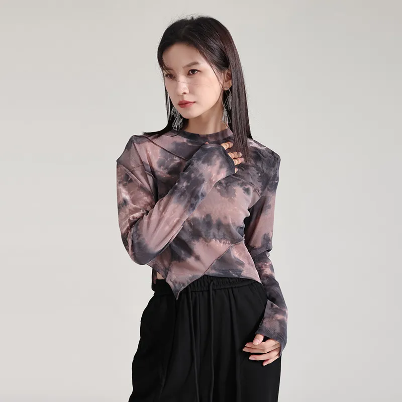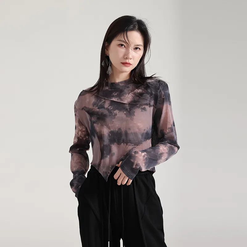 衣都精品- 2023新款漸層印花暈染拼接不規則上衣