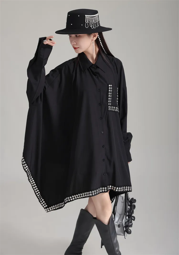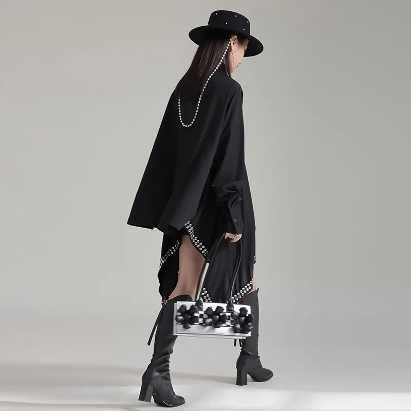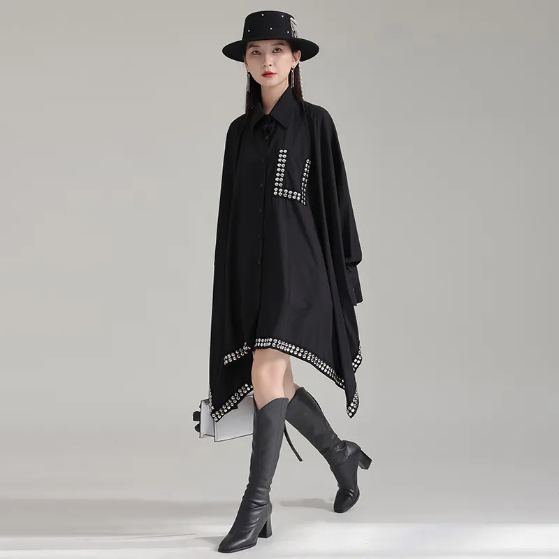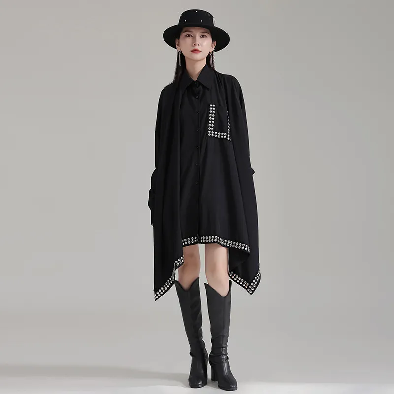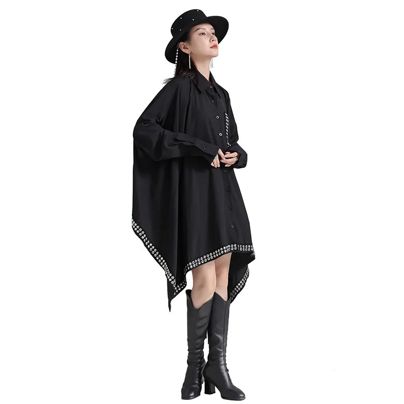 衣都精品- 2023新款暗黑風不規則鉚釘連衣裙