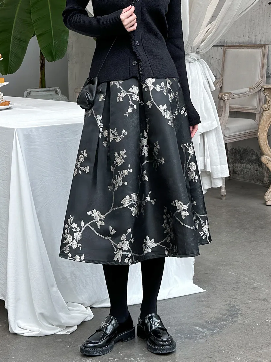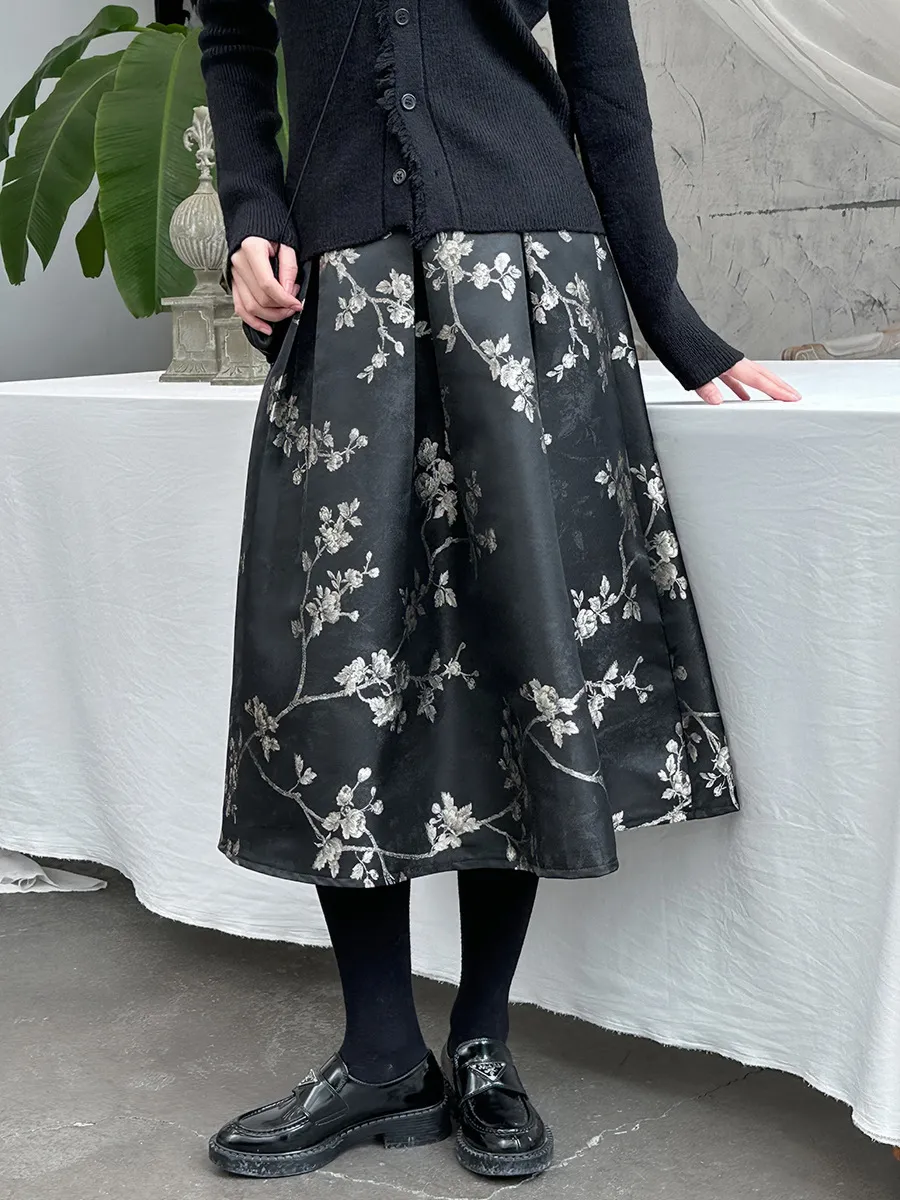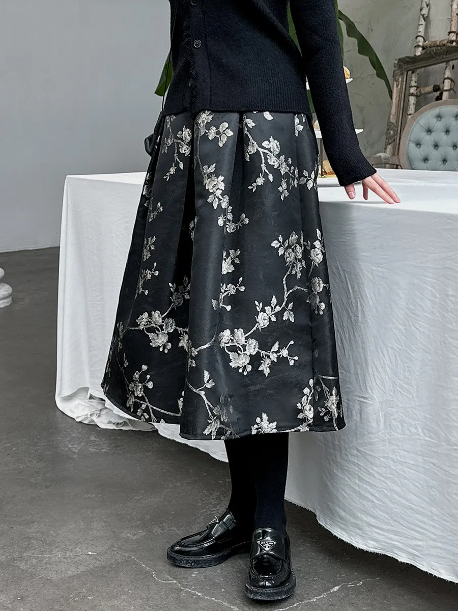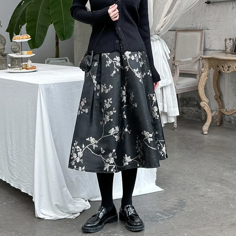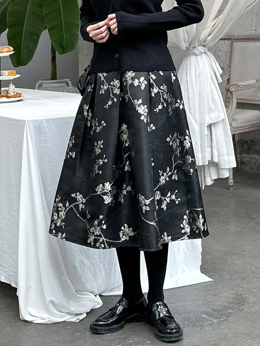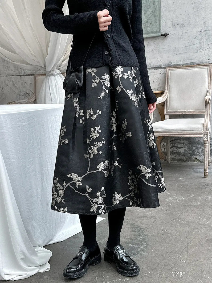 衣都精品- 2023新款純色提花百褶復古中長款半身裙