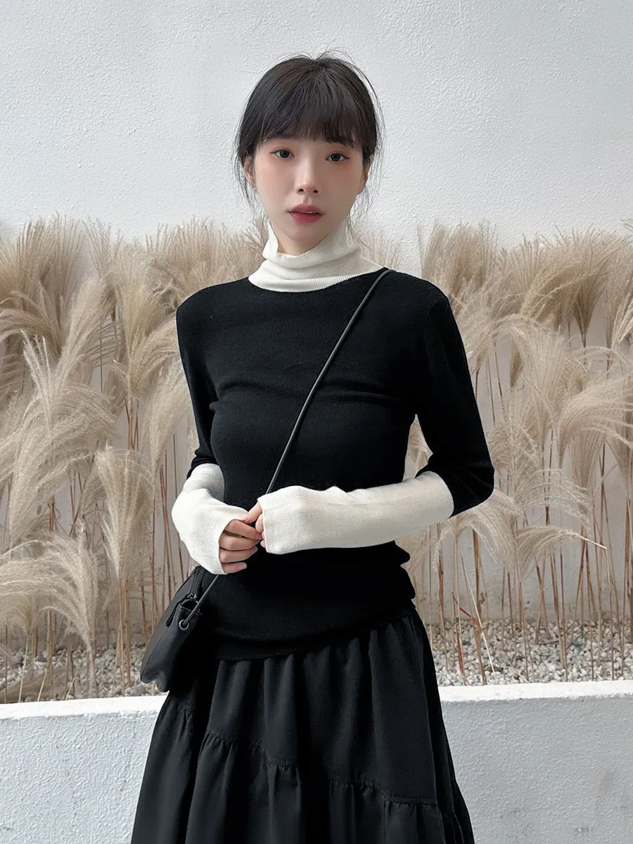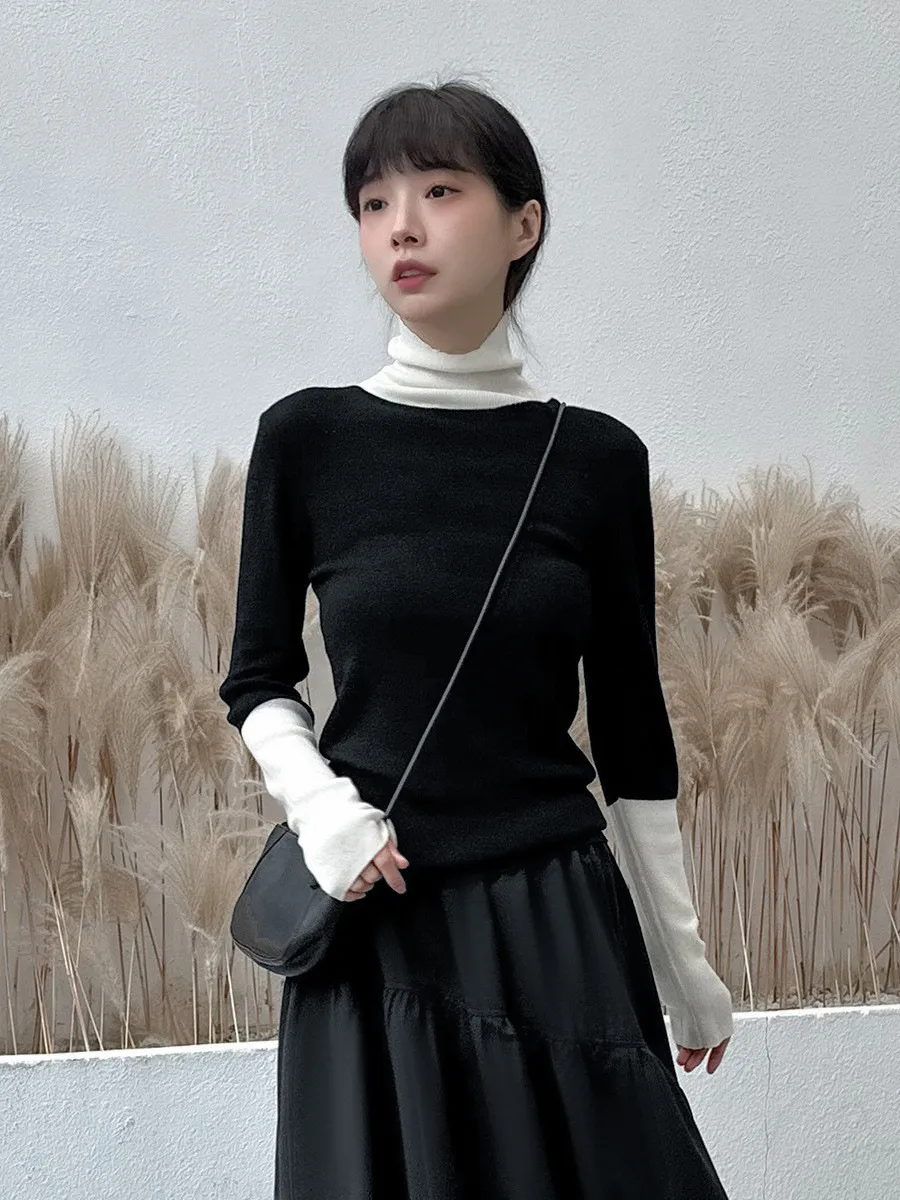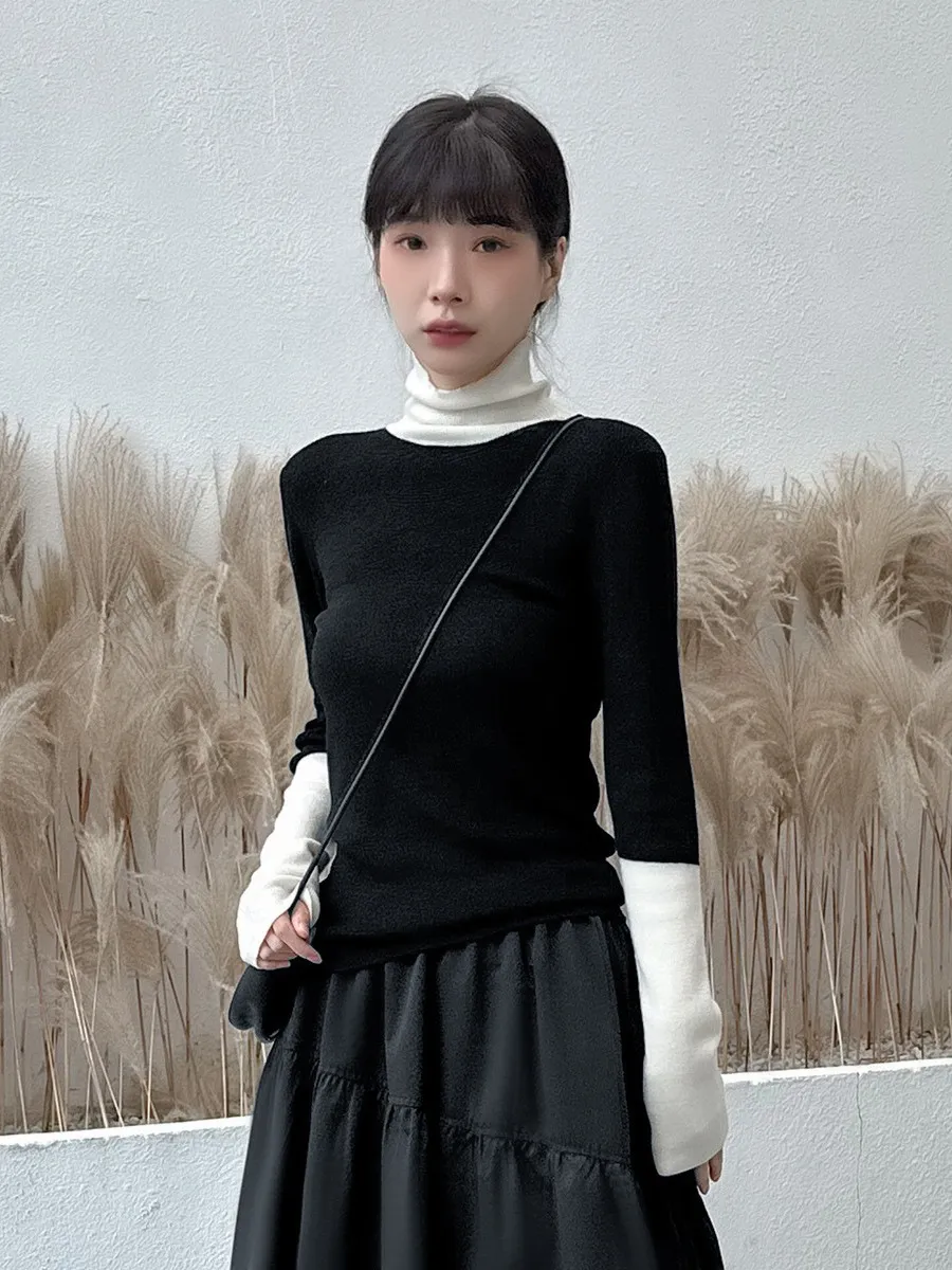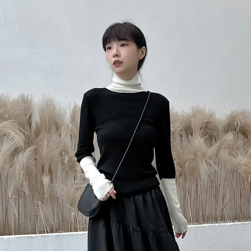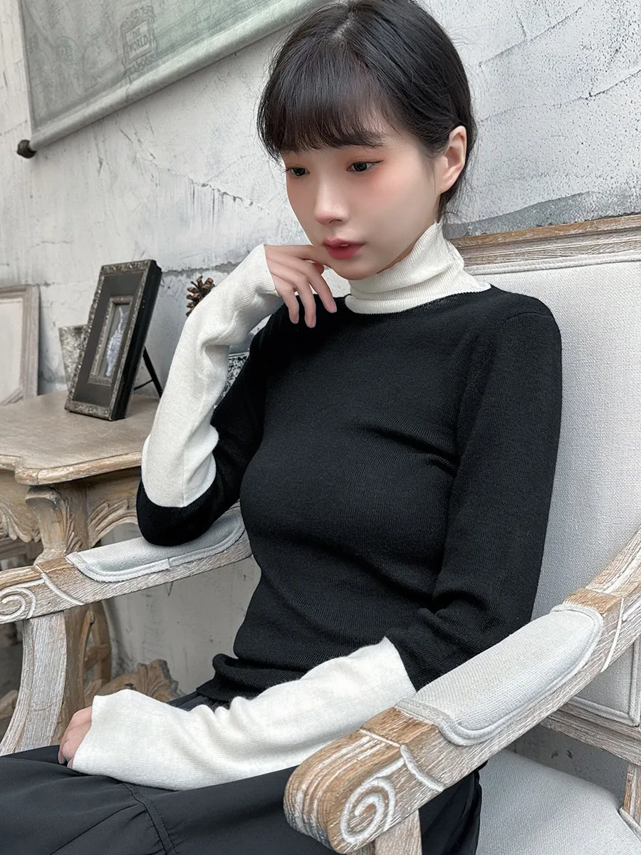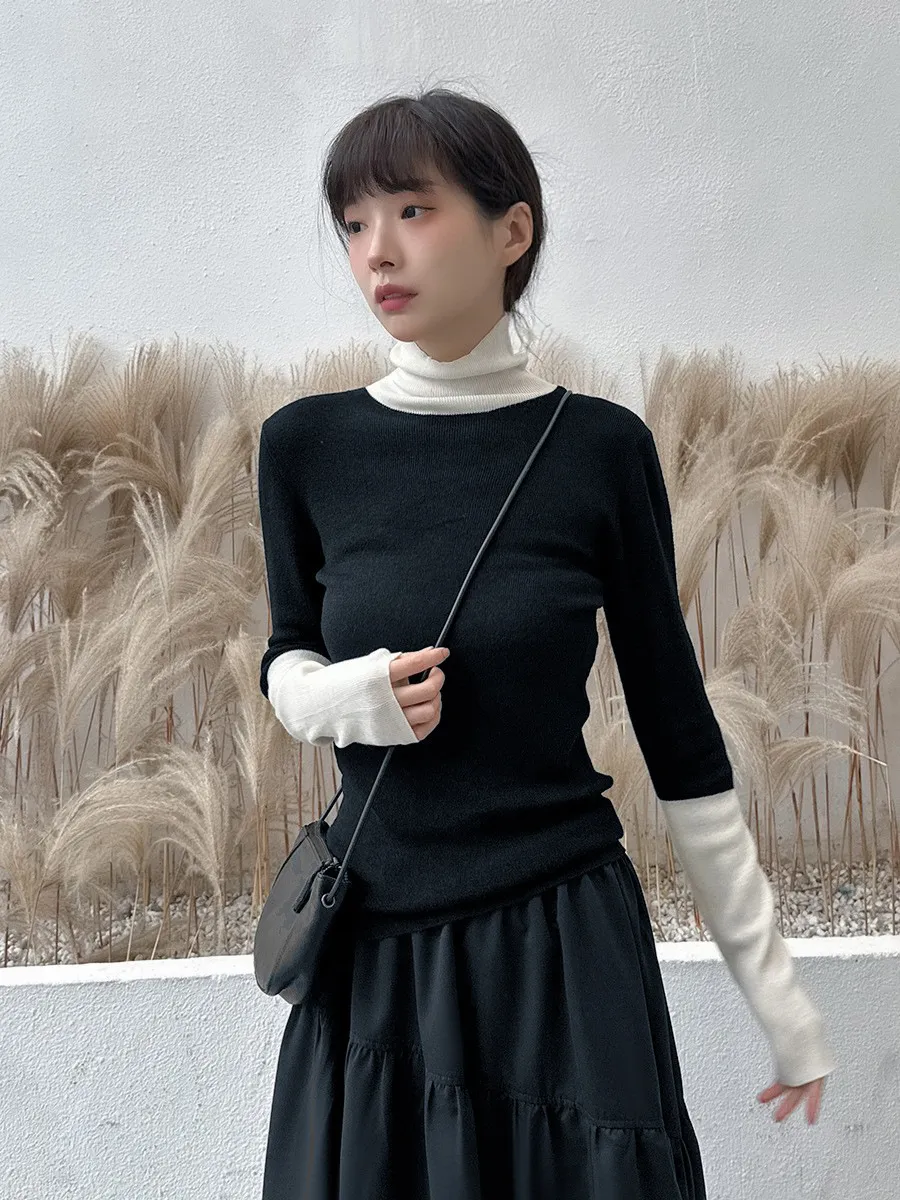 衣都精品- 2023新款拼接撞色高領羊毛衫上衣