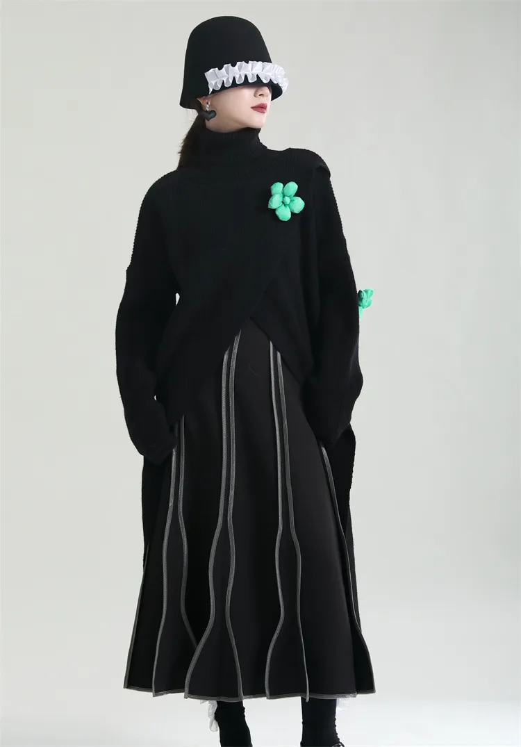 衣都精品- 2023新款時髦簡約下擺開叉針織裙