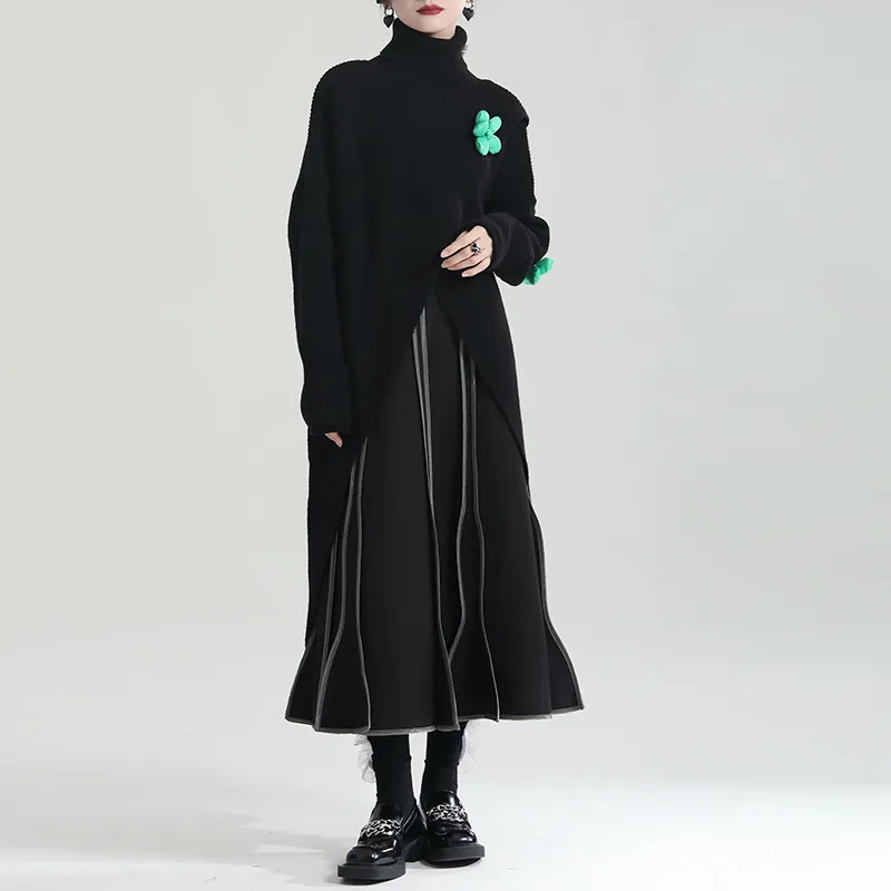 衣都精品- 2023新款拼接撞色高領羊毛衫上衣