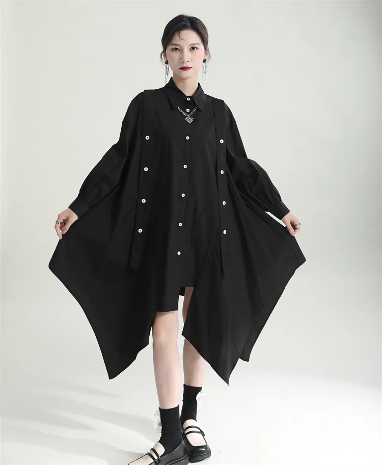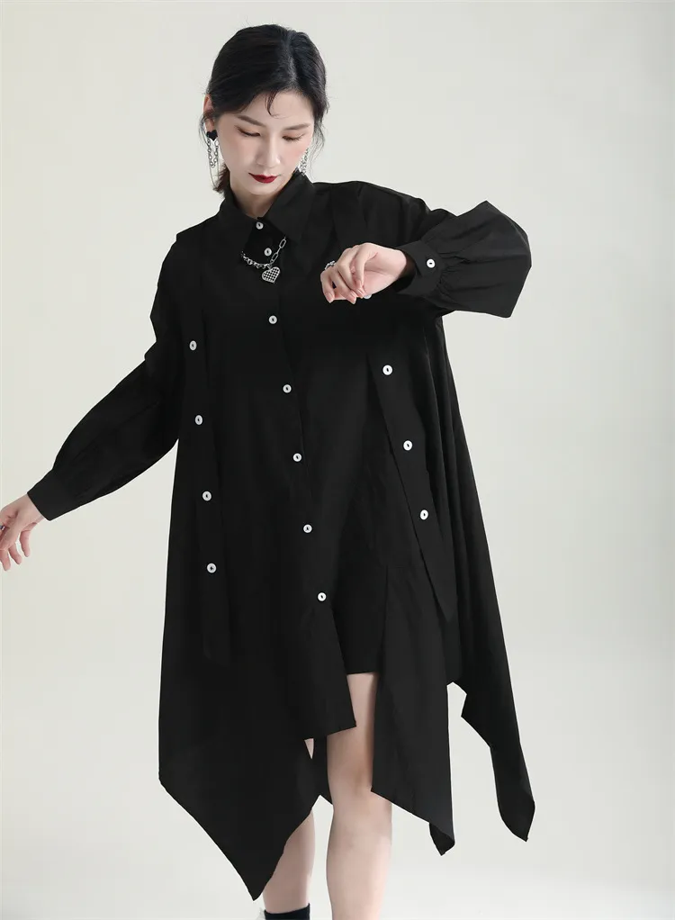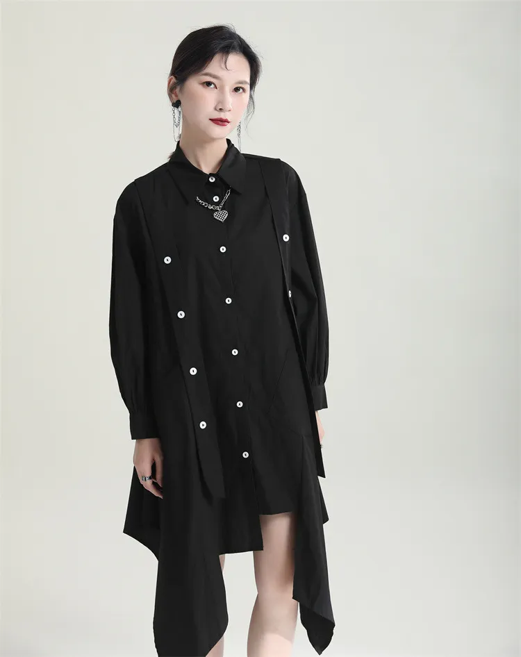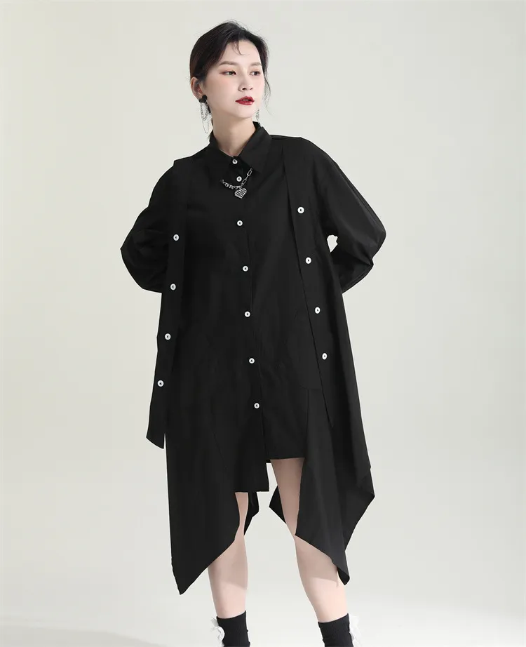 衣都精品- 2023新款翻領中長款不規則飄帶上衣
