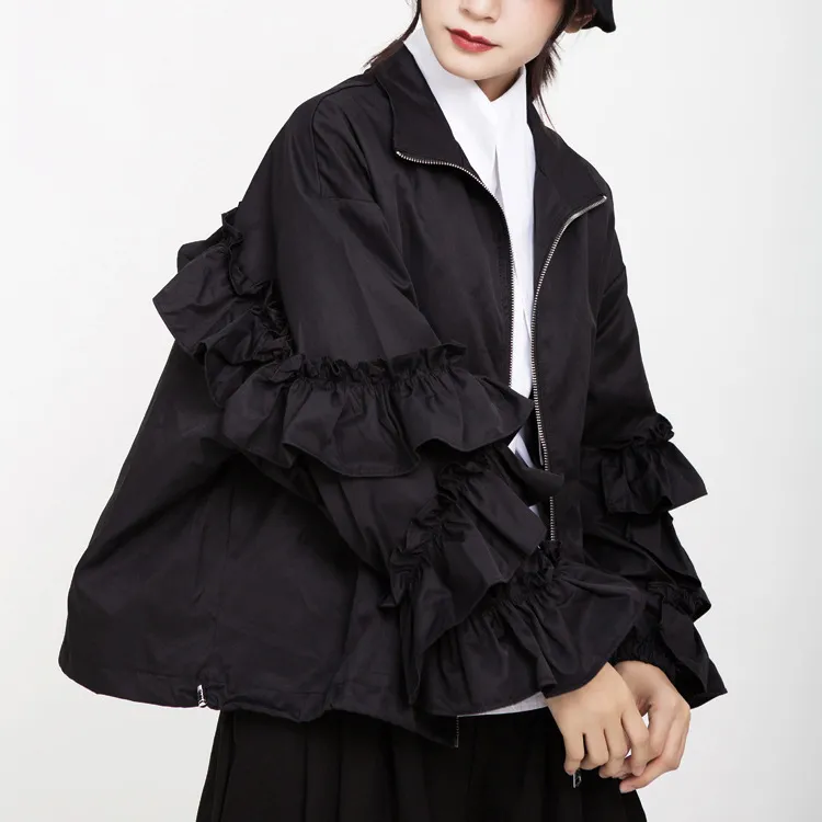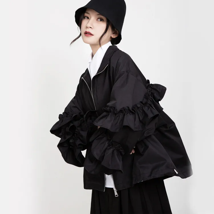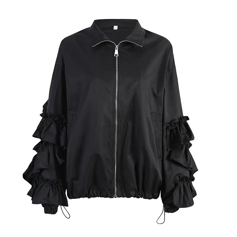 衣都精品- 2023新款立體裝飾潮牌木耳邊泡泡袖保暖外套