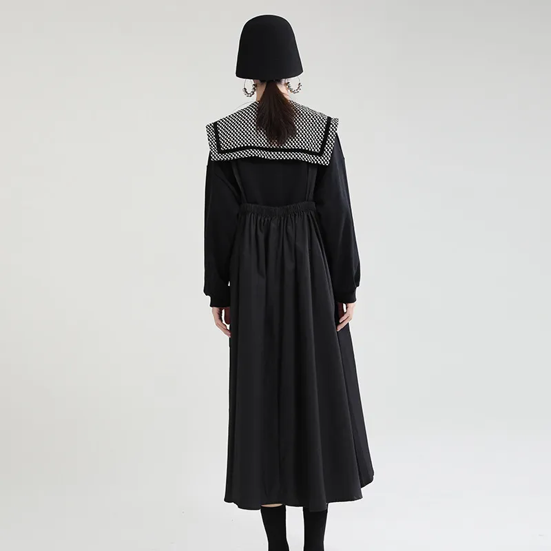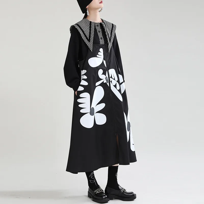 衣都精品- 2023新款設計感重工黑白拼接長袖連衣裙