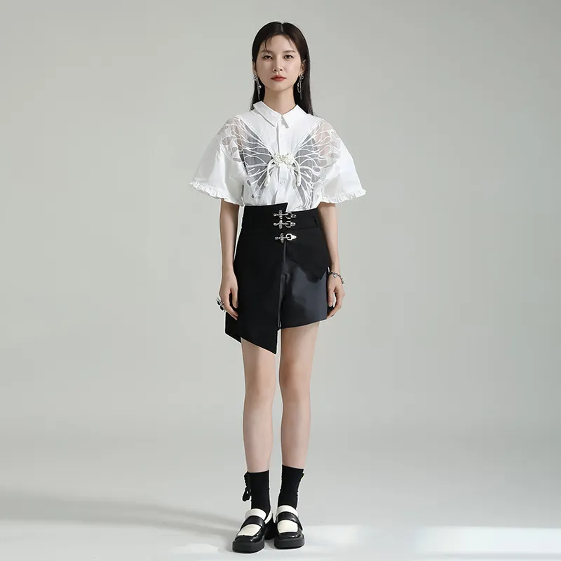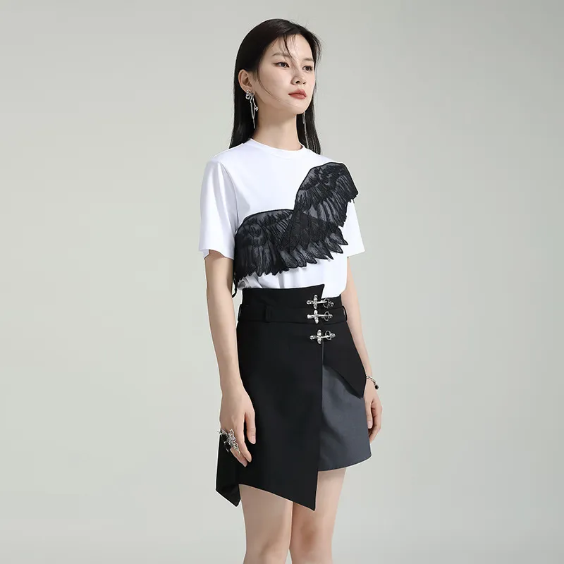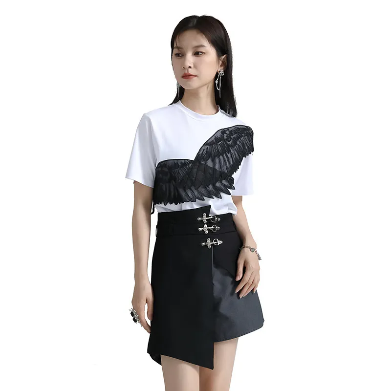 衣都精品- 2023新款不規則鏈條暗黑風塗鴉印花半身裙