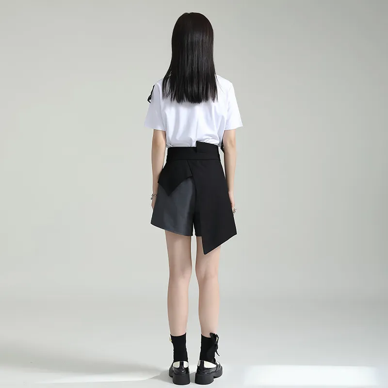衣都精品- 2023新款拼接撞色不規則高腰休閒褲