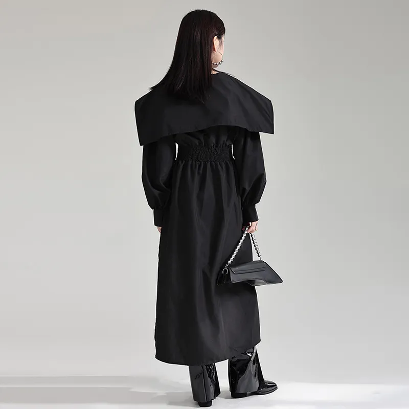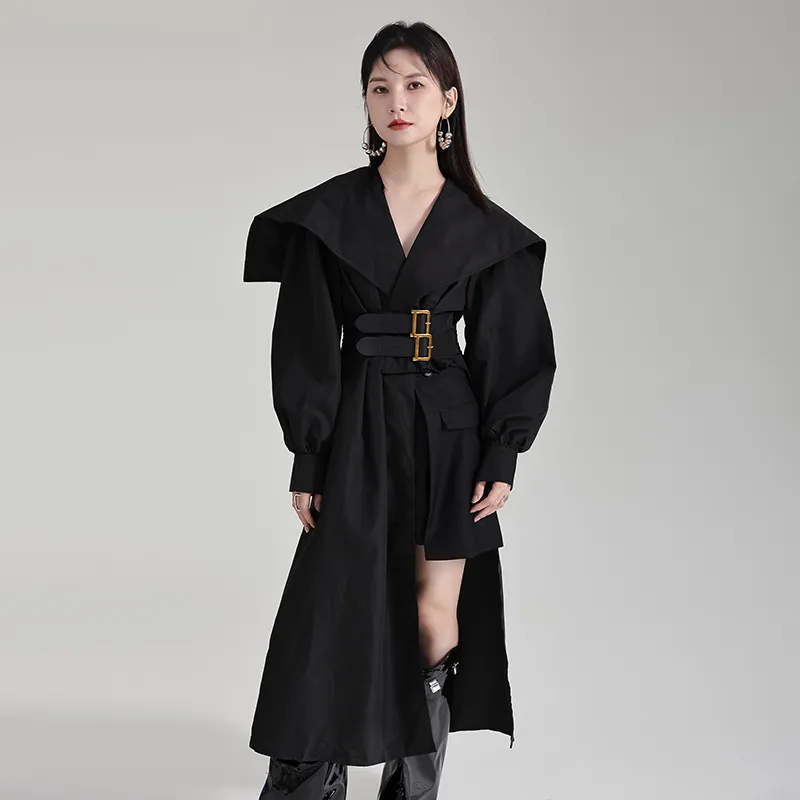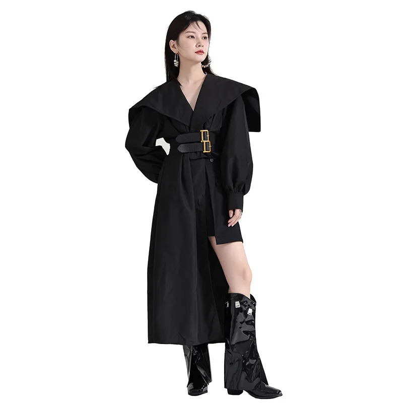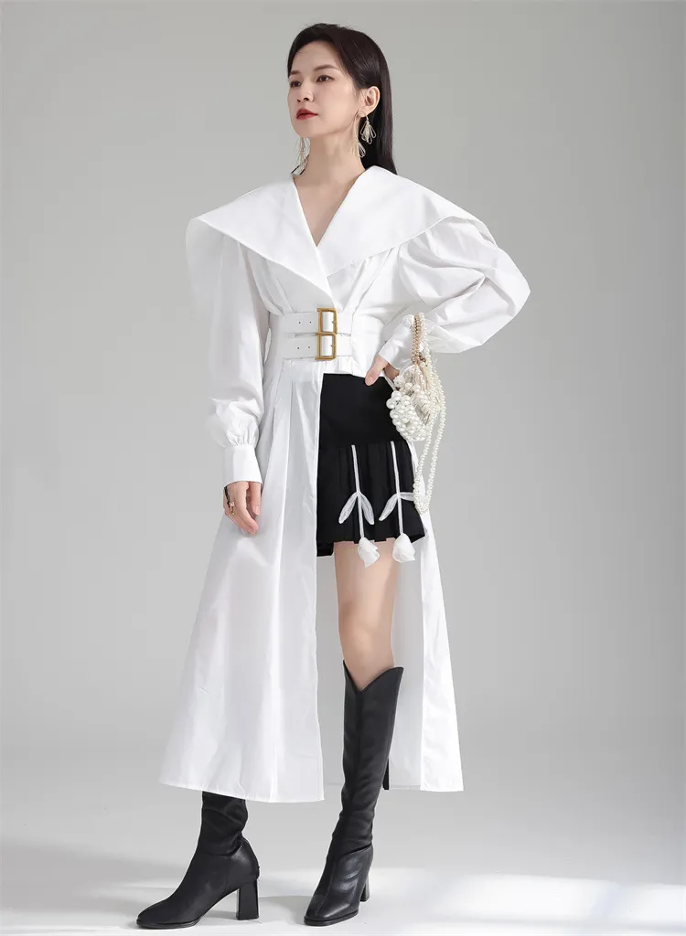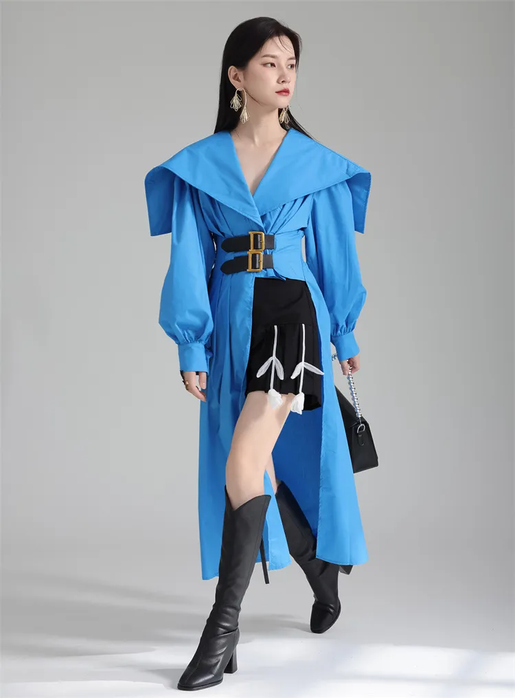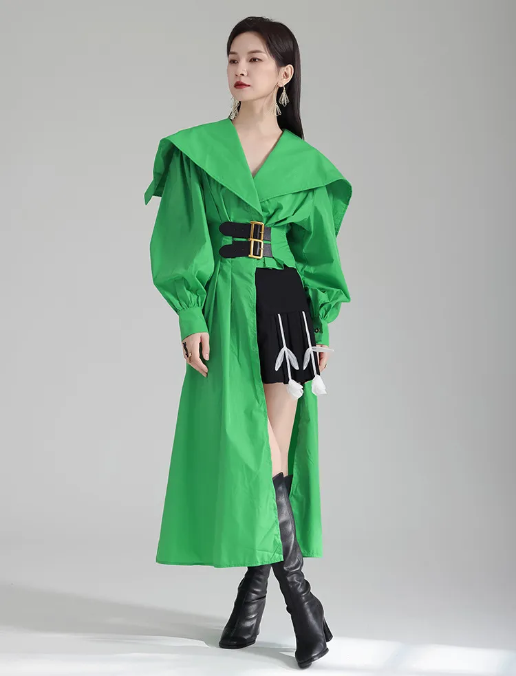 衣都精品- 2023新款復古不規則拼接翻領燈籠袖連衣裙