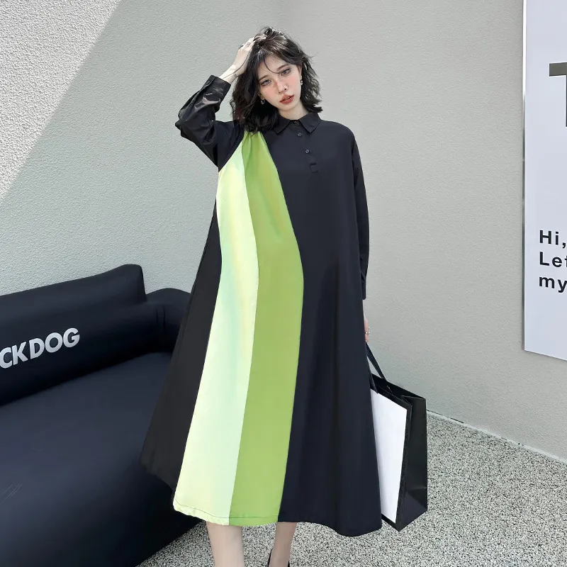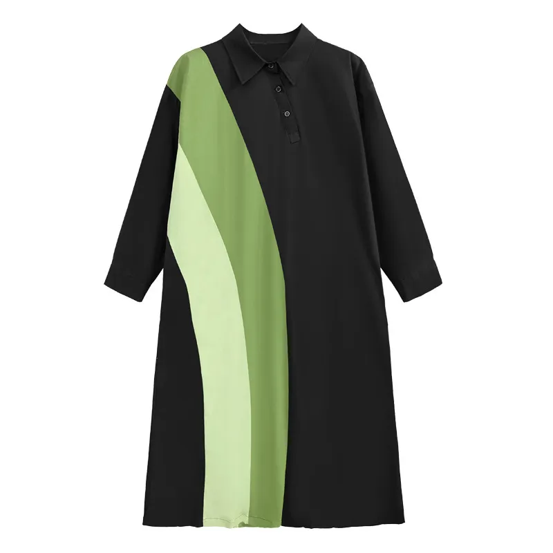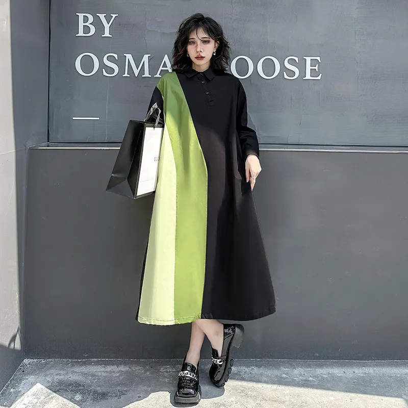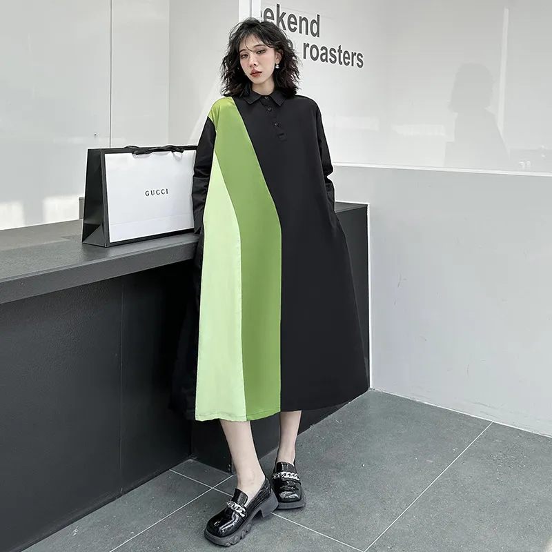 衣都精品- 2023新款港風翻領洋氣撞色拼接連衣裙