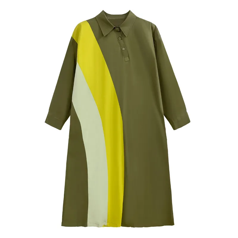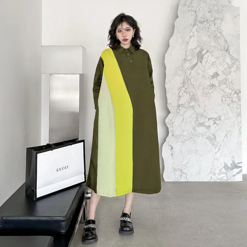衣都精品- 2023新款復古不規則拼接翻領燈籠袖連衣裙