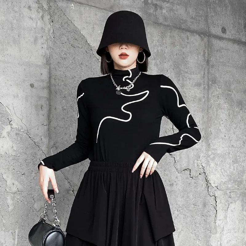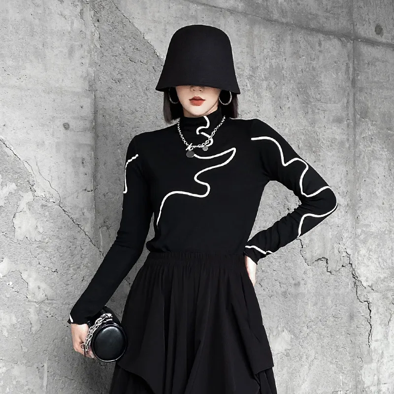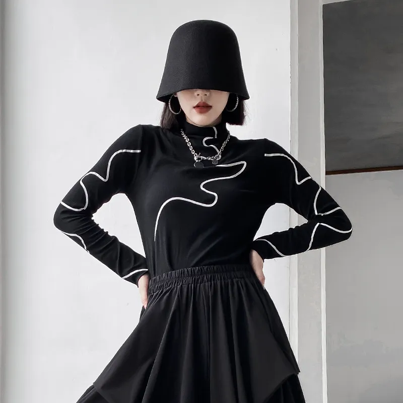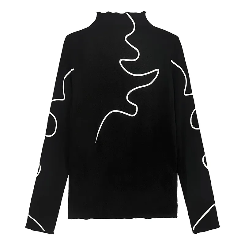 衣都精品- 2023新款復古港風半高領印花長袖上衣