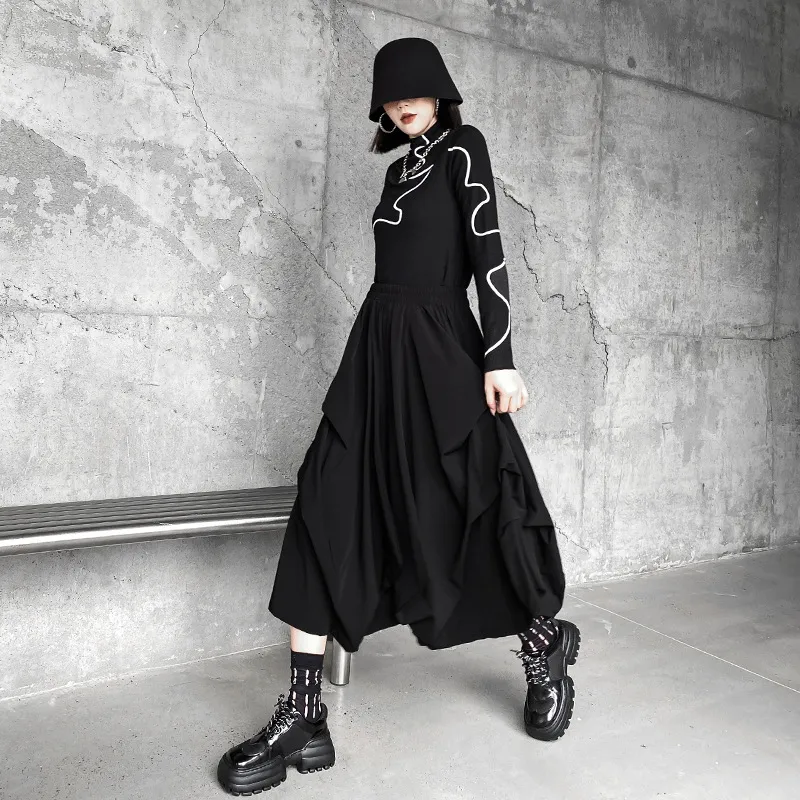 衣都精品- 2023新款復古港風高腰壓皺拉鍊半身裙