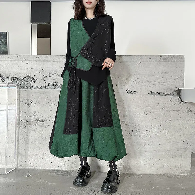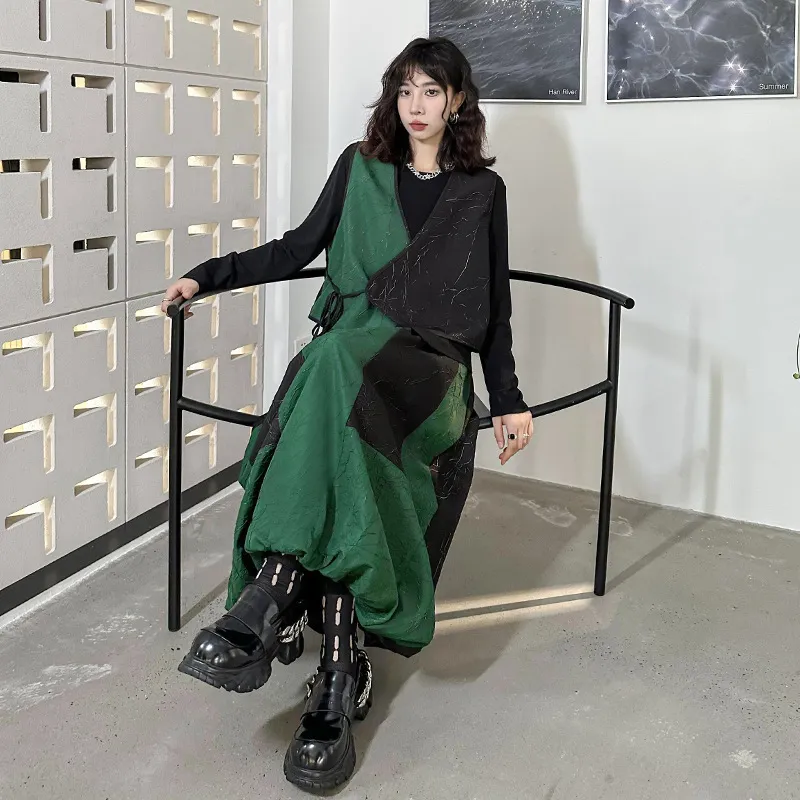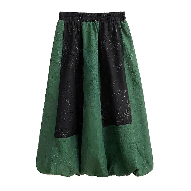 衣都精品- 2023新款收褶燈籠款拼色時尚休閒半身裙